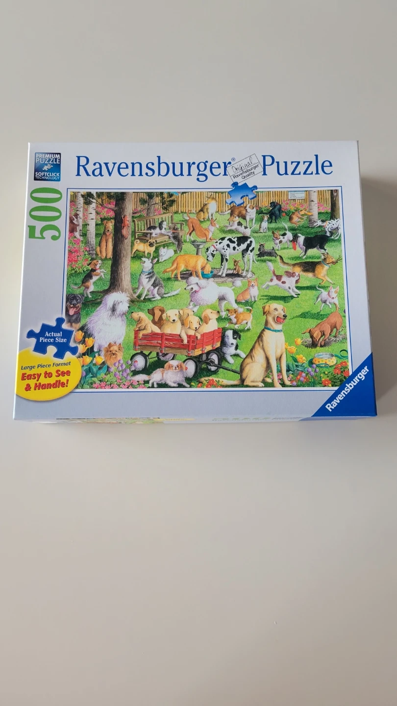 Selling a Ravensburger 500-piece puzzle featuring a cute dog theme! The puzzle is in great condition and ready for a new home. It has large pieces that are easy to see and handle