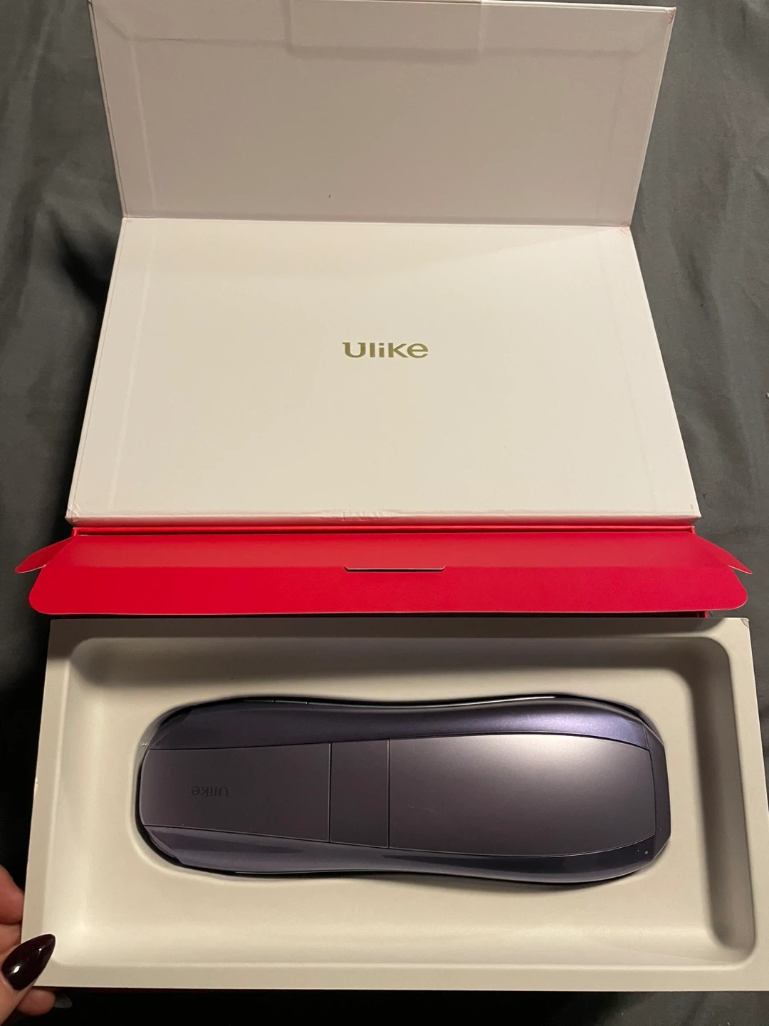 Ulike IPL hair removal device with all original accessories. Includes the device, power adapter, and charging cable. It's designed for home use. Comes with its original packaging. Used only 2x. Perfect condition.