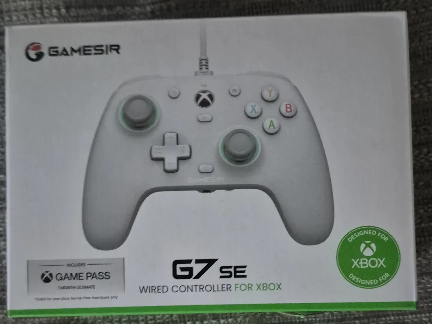 This is the GameSir G7 SE wired controller for Xbox. It's designed for Xbox consoles and includes 1 month of Game Pass Ultimate. It's a wired controller for a reliable connection.