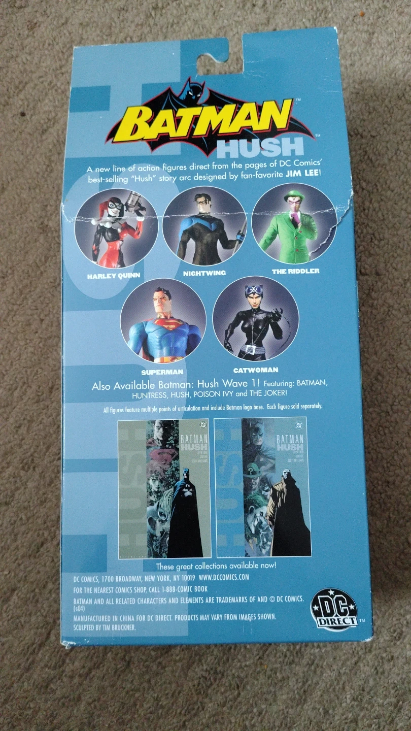 Selling a Batman Hush Catwoman collector action figure! This figure is from the popular Hush storyline by Jim Lee. It features multiple points of articulation and includes a Batman logo base. Box included! The box has significant wear but the figure inside is pristine