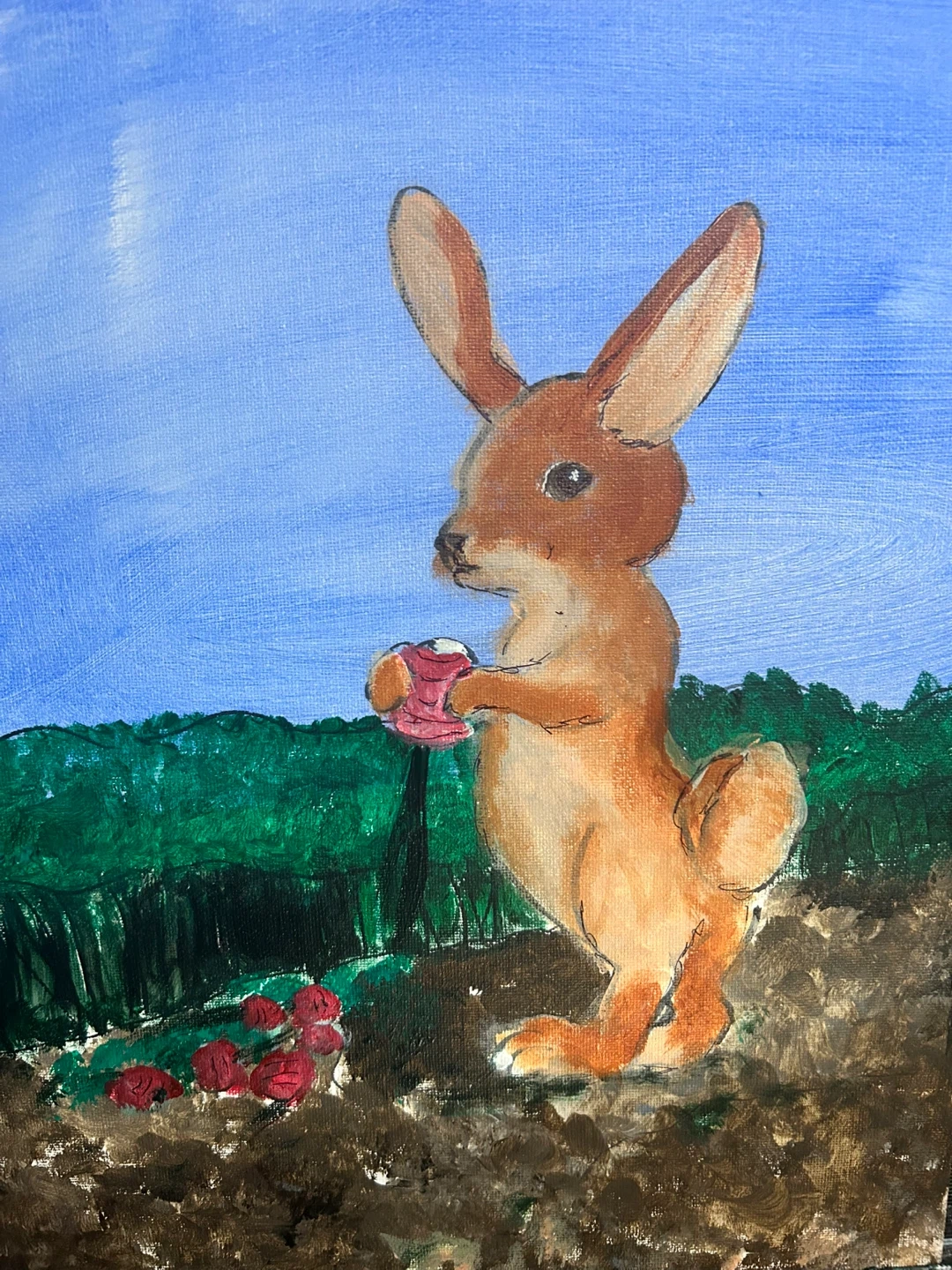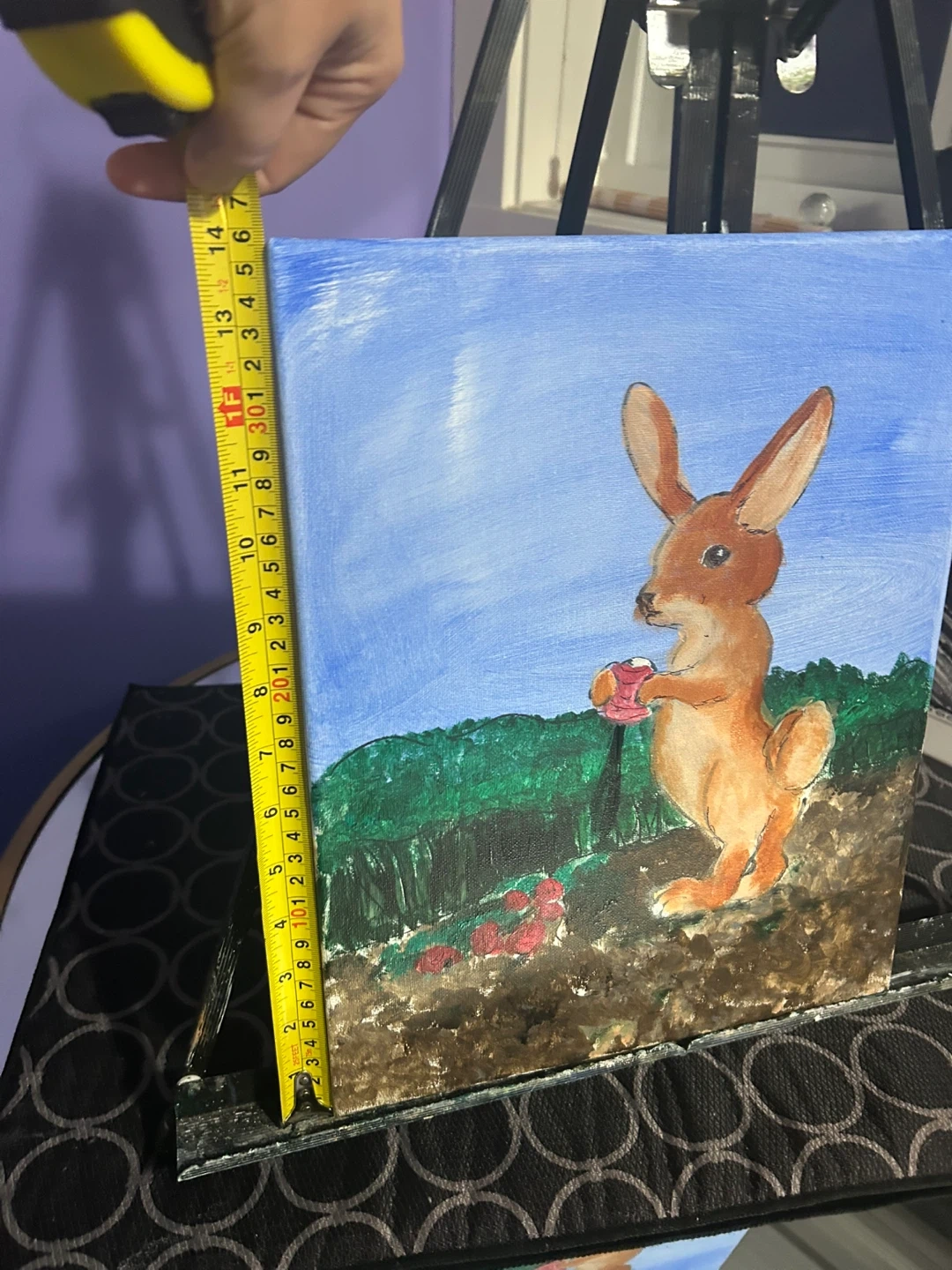 11x14 inch acrylic painting of a rabbit eating a red beats. Stealing them from some one’s garden. Cash or e-transfer only. Sorry no refunds. Payment to be made at pick up. Pick up place is A&W on 200st Langley