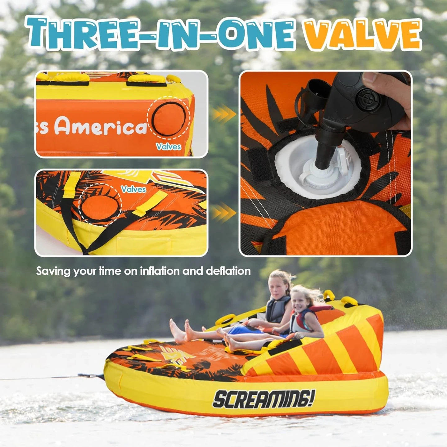 Boston Valve: Easy to inflate, it inflates and deflates efficient inflation and deflation. Airtight and secure, easy to operate, this double rowing tube inflates and deflates quickly and effortlessly