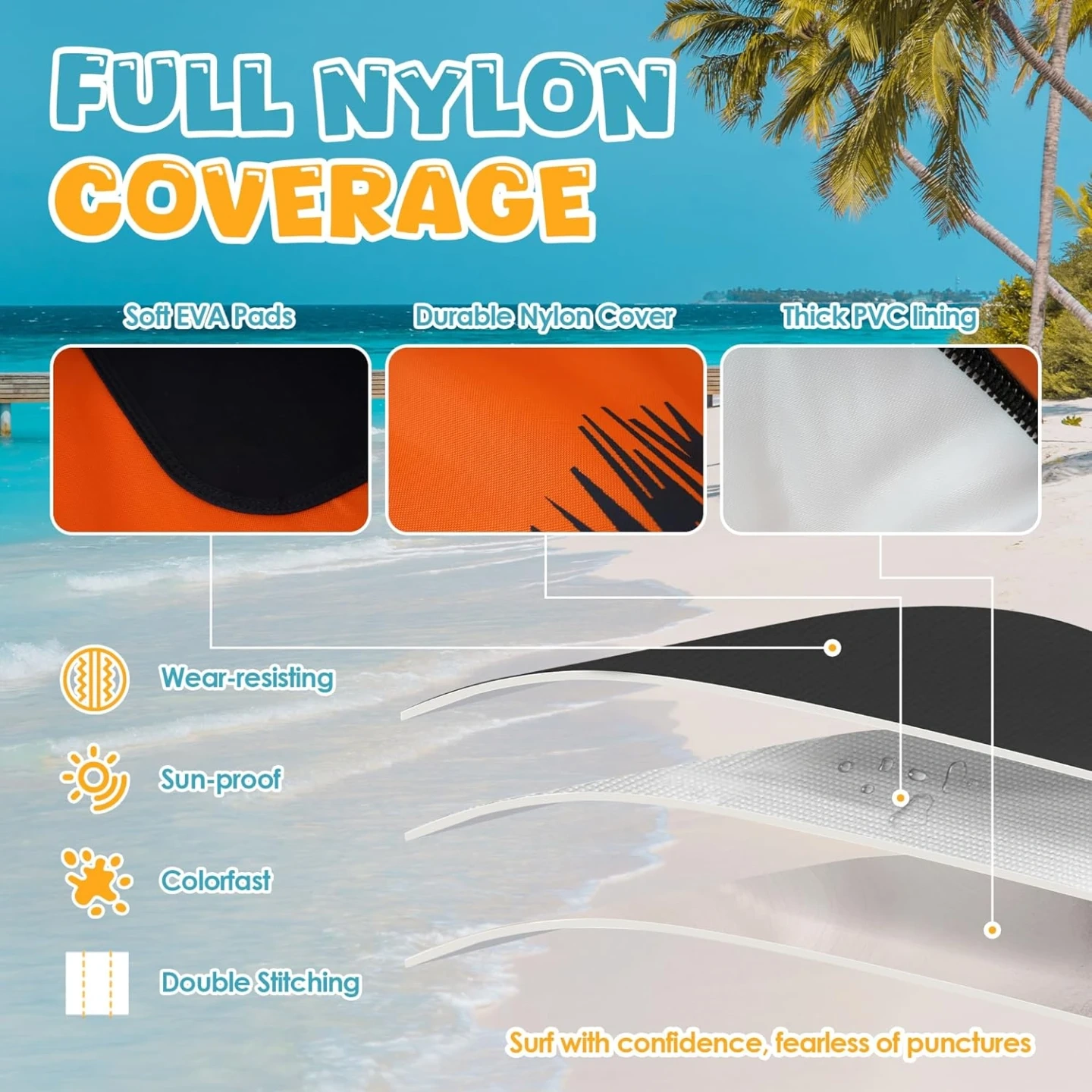 Luxury Handle: PEVA soft-touch panel + foam-filled grip for enhanced durability and superior grip. Vibrant color helps you quickly pull yourself up from the water.