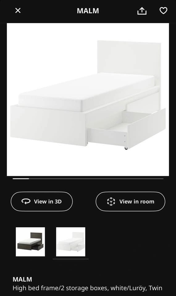 IKEA Twin Bed Frame with 2 Drawers & Mattress