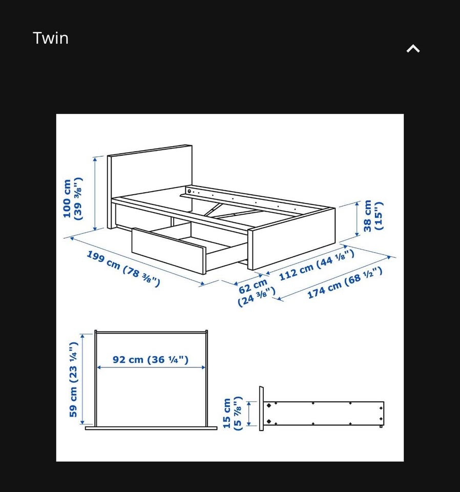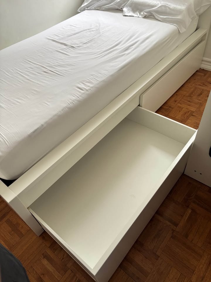 IKEA Twin Bed Frame with 2 Drawers & Mattress