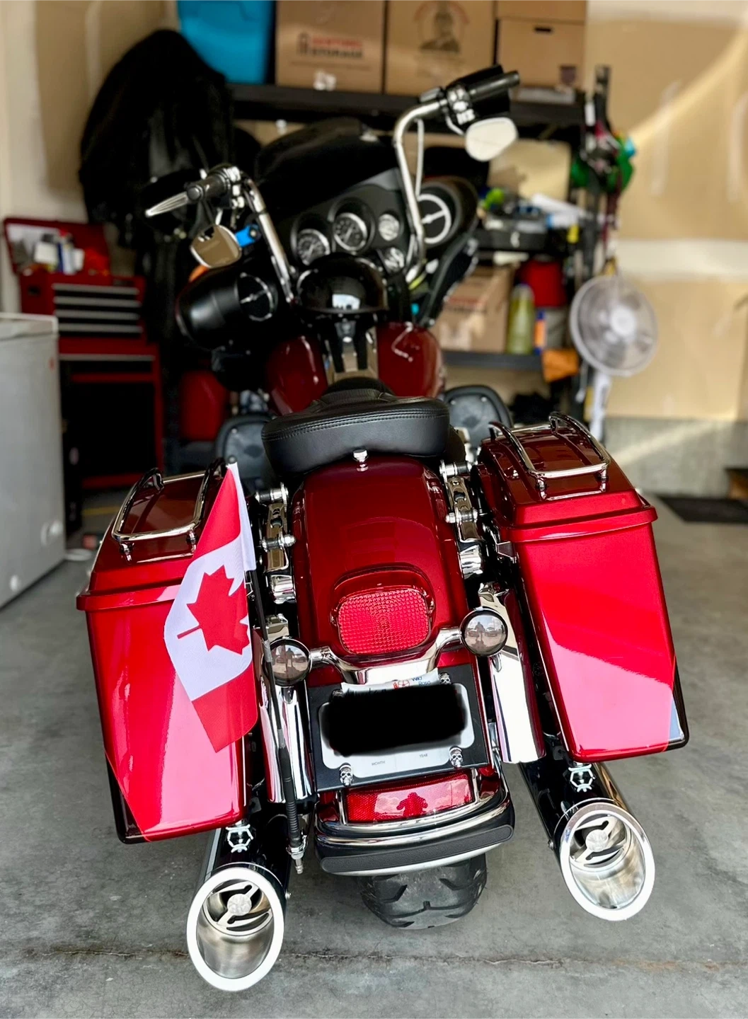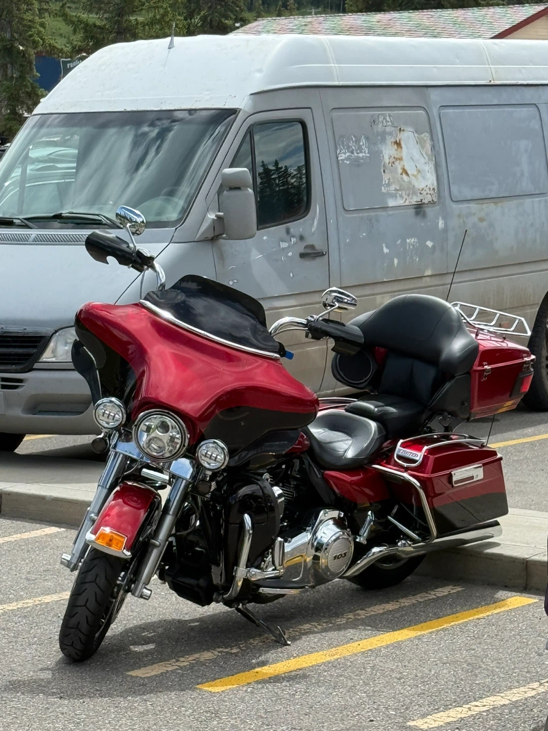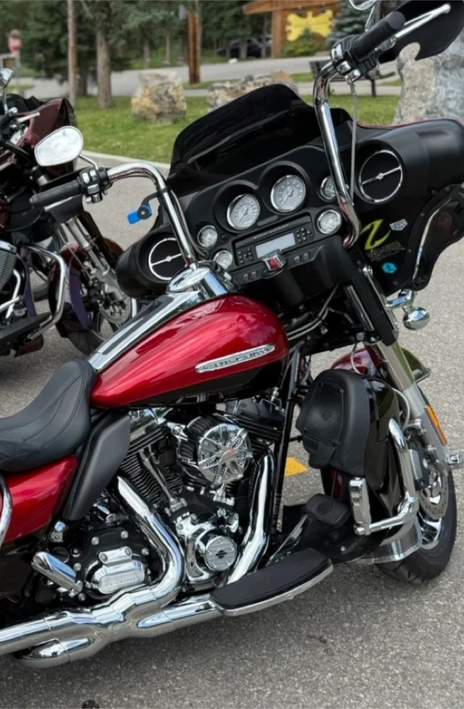 Selling a beautiful red Harley Davidson touring motorcycle. It's in great condition and ready for the open road! Perfect for long rides and comfortable cruising. 30,000 km