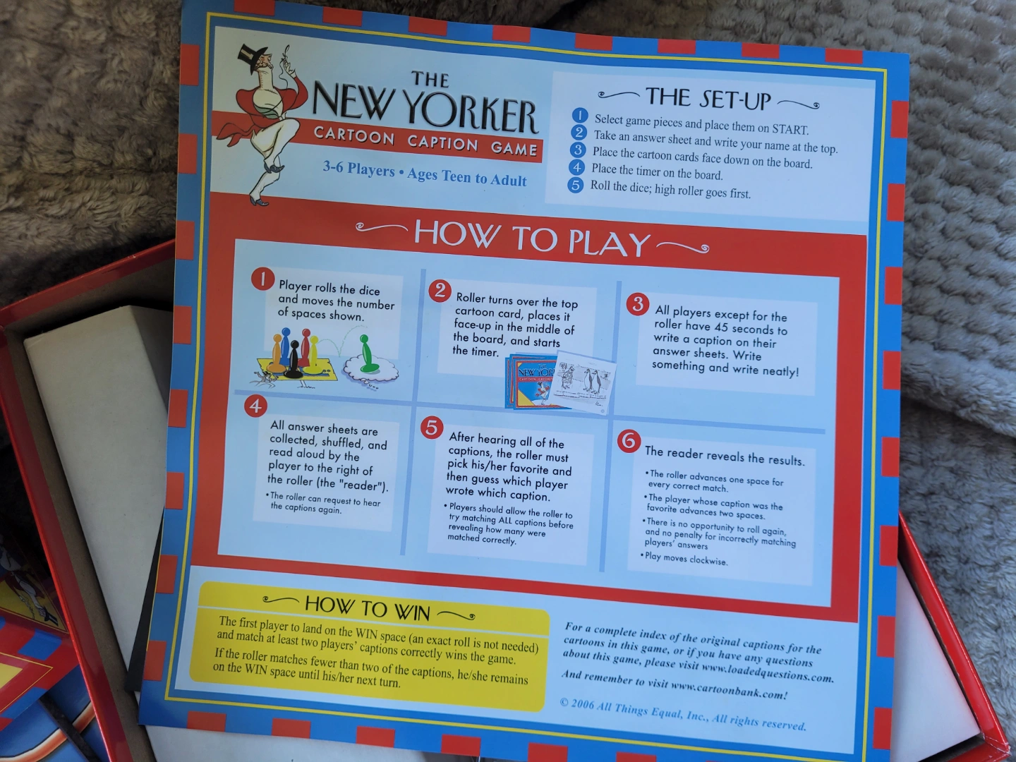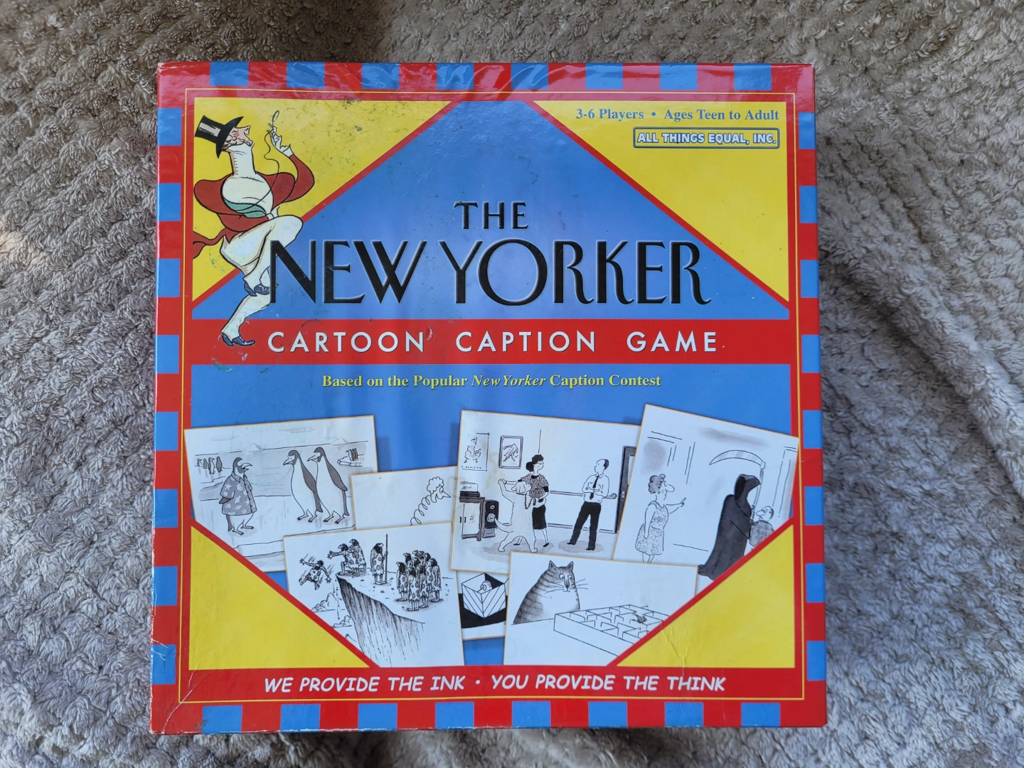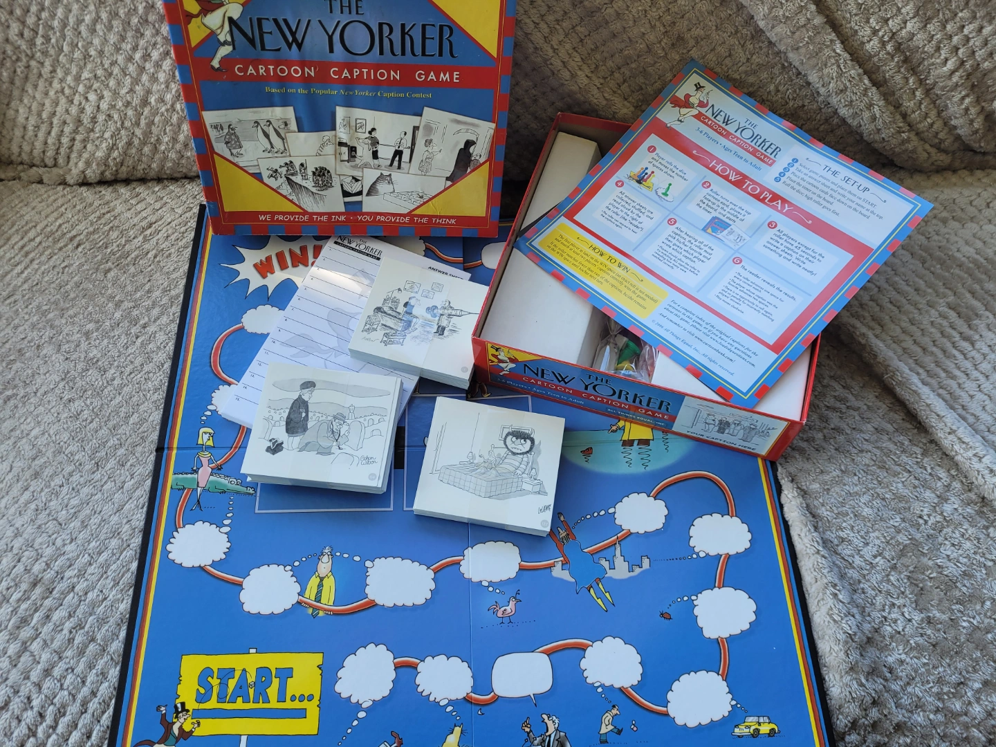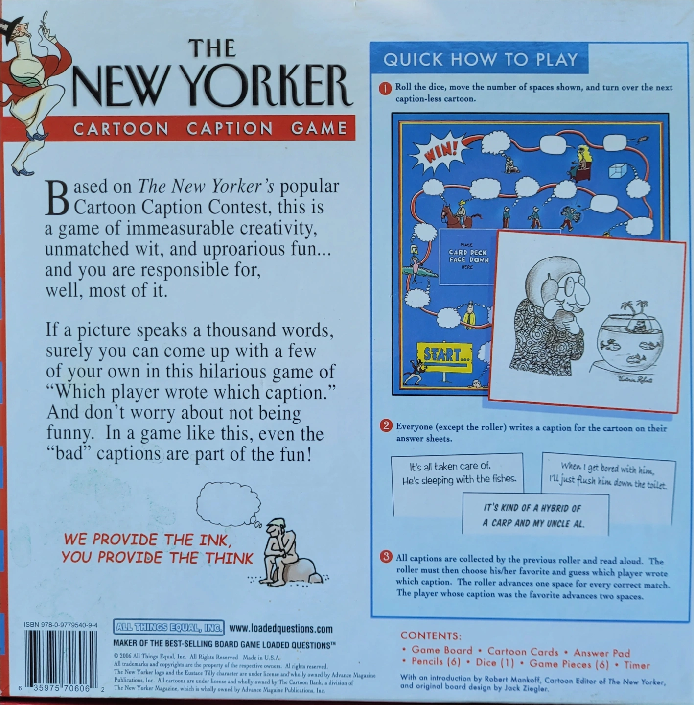 Board game based on the popular New Yorker caption contest. Includes game board, cartoon cards, answer pad, and more. Fun for 3-6 players, ages teen to adult.