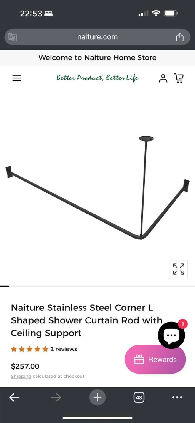 πΏ Naiture Stainless Steel Corner Shower Curtain Rod 60β x 36β β Black