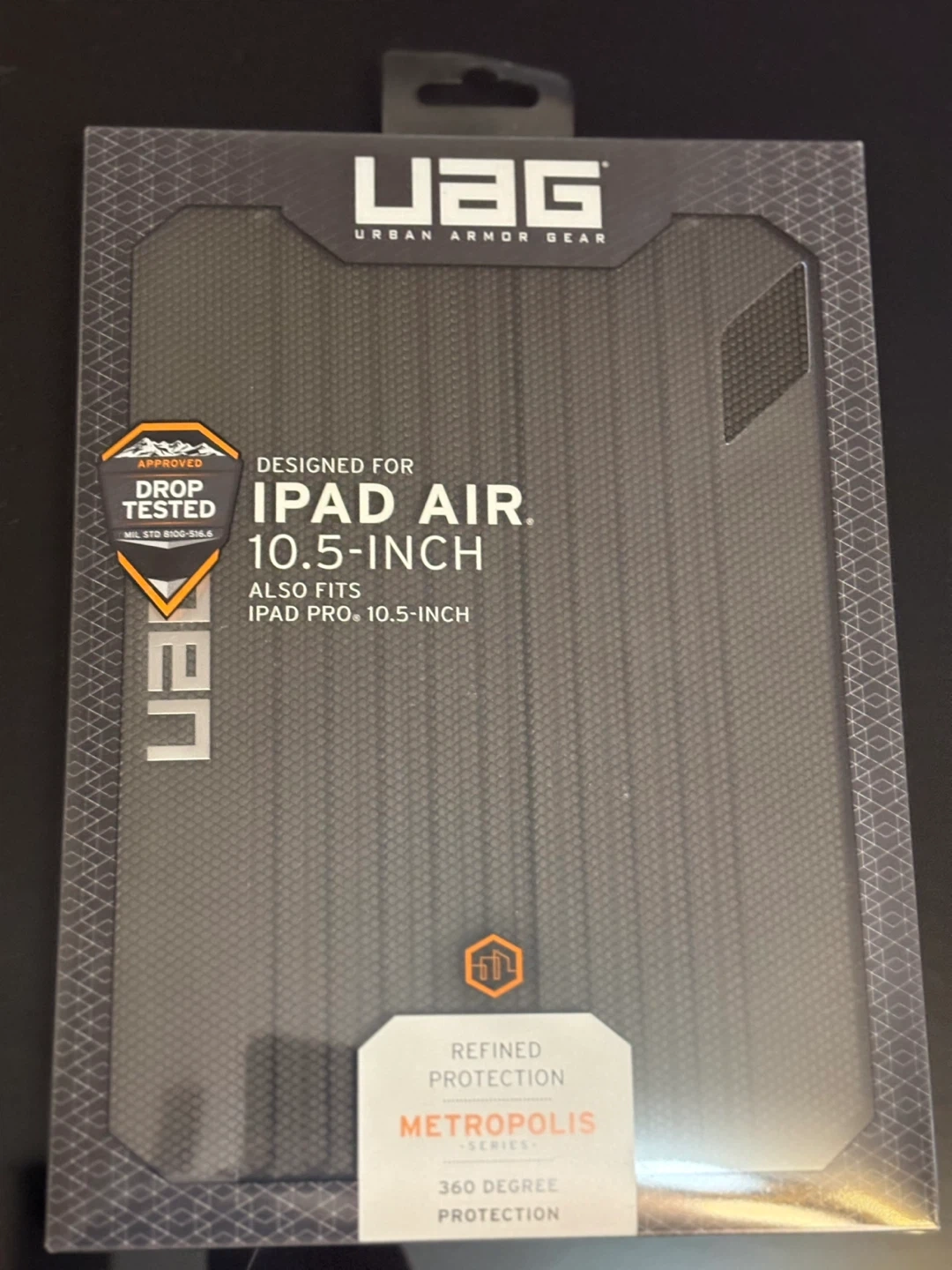 This UAG Metropolis Series case is designed for iPad Air 10.5-inch and also fits iPad Pro 10.5-inch. It offers impact resistant and traction grip features.