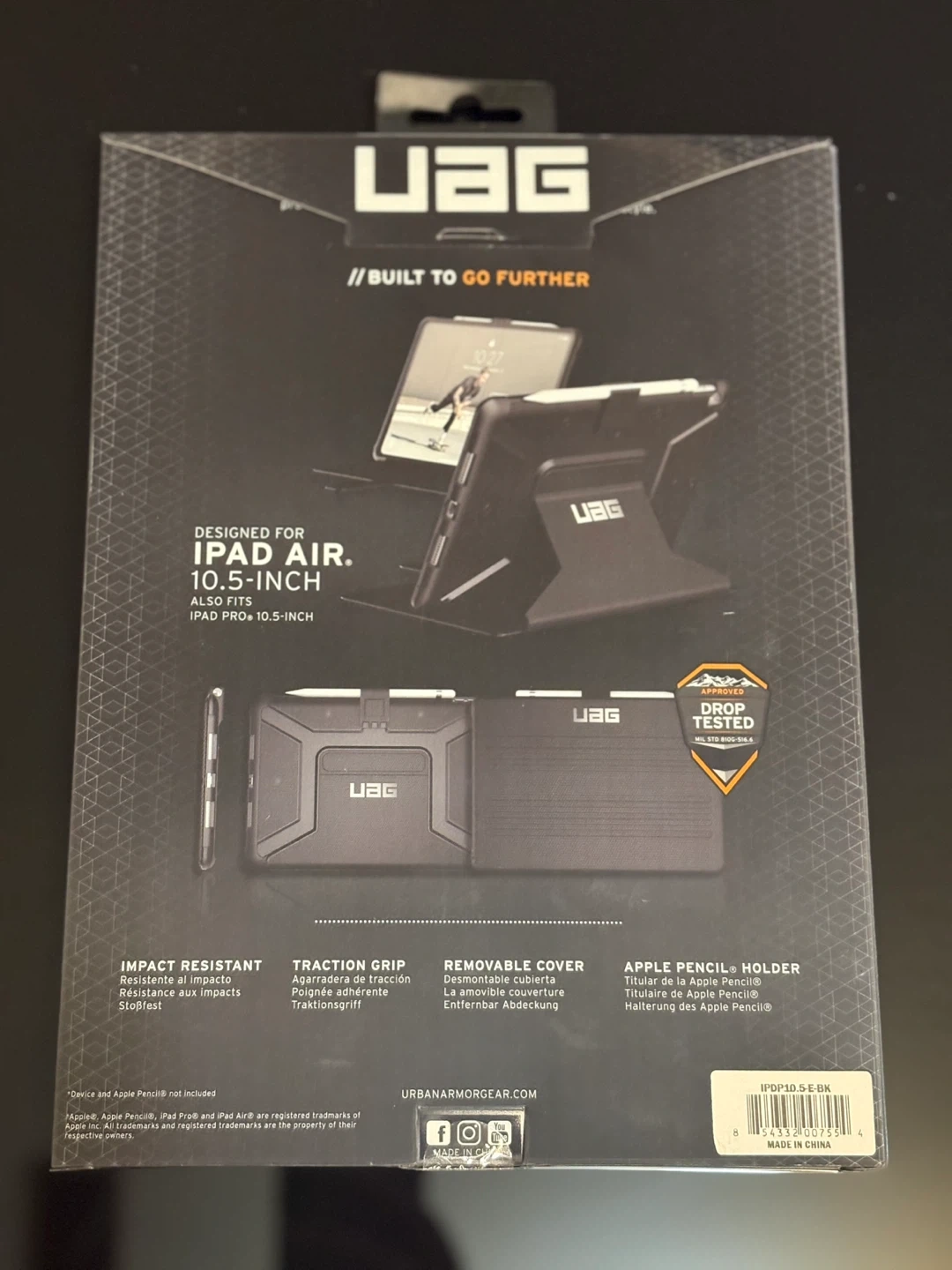This UAG Metropolis Series case is designed for iPad Air 10.5-inch and also fits iPad Pro 10.5-inch. It offers impact resistant and traction grip features.