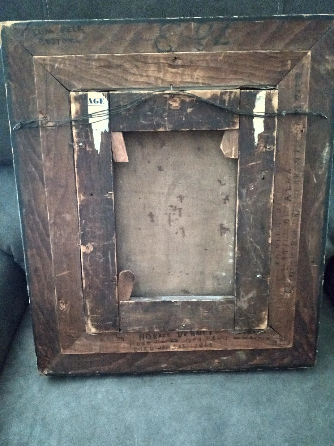 This is a portrait painting, believed to be by Horace Vernet, who died January 12, 1863. The painting is framed and signed "TOM PECK CUSTOMS". It's a unique piece for art collectors.