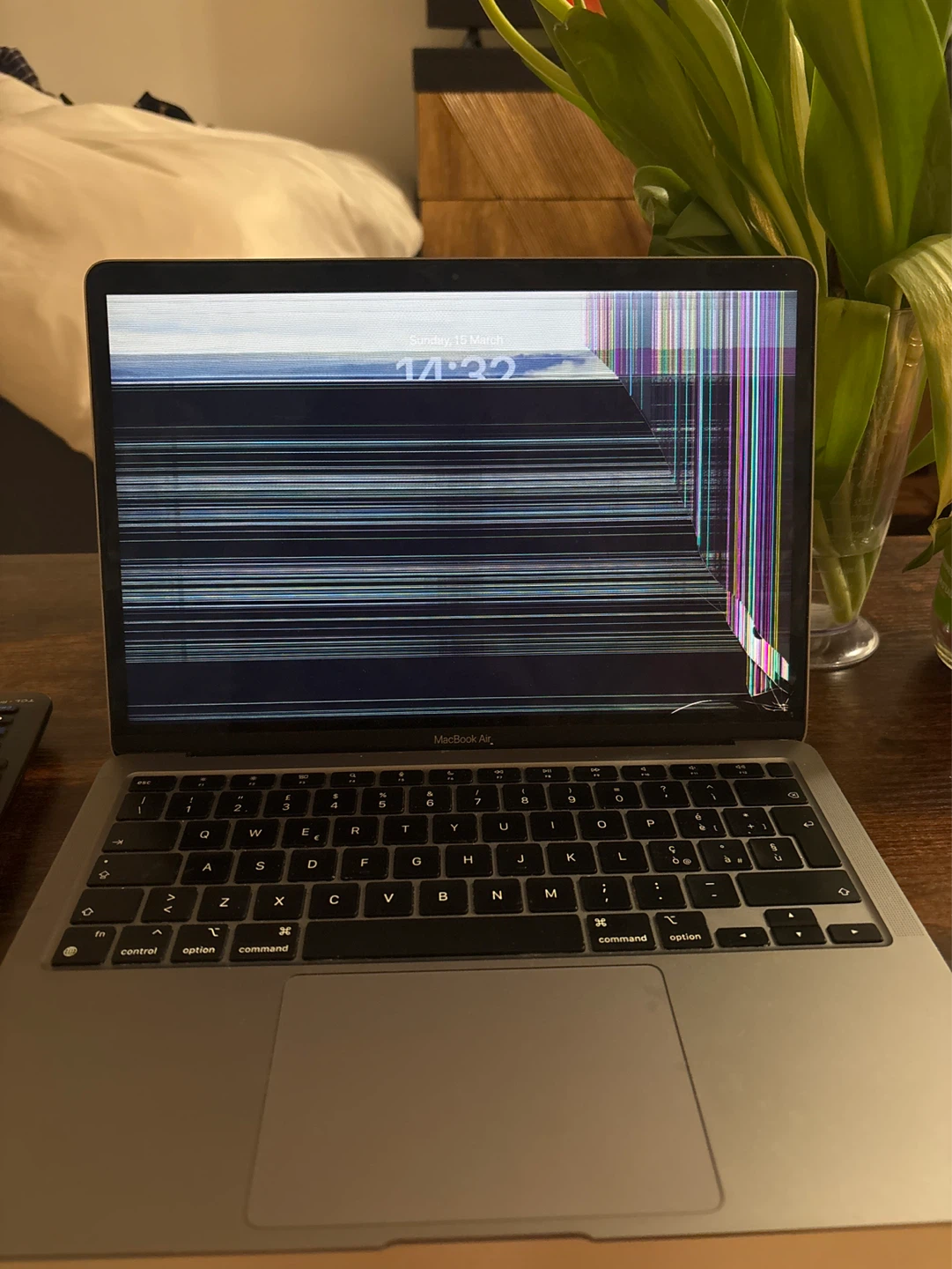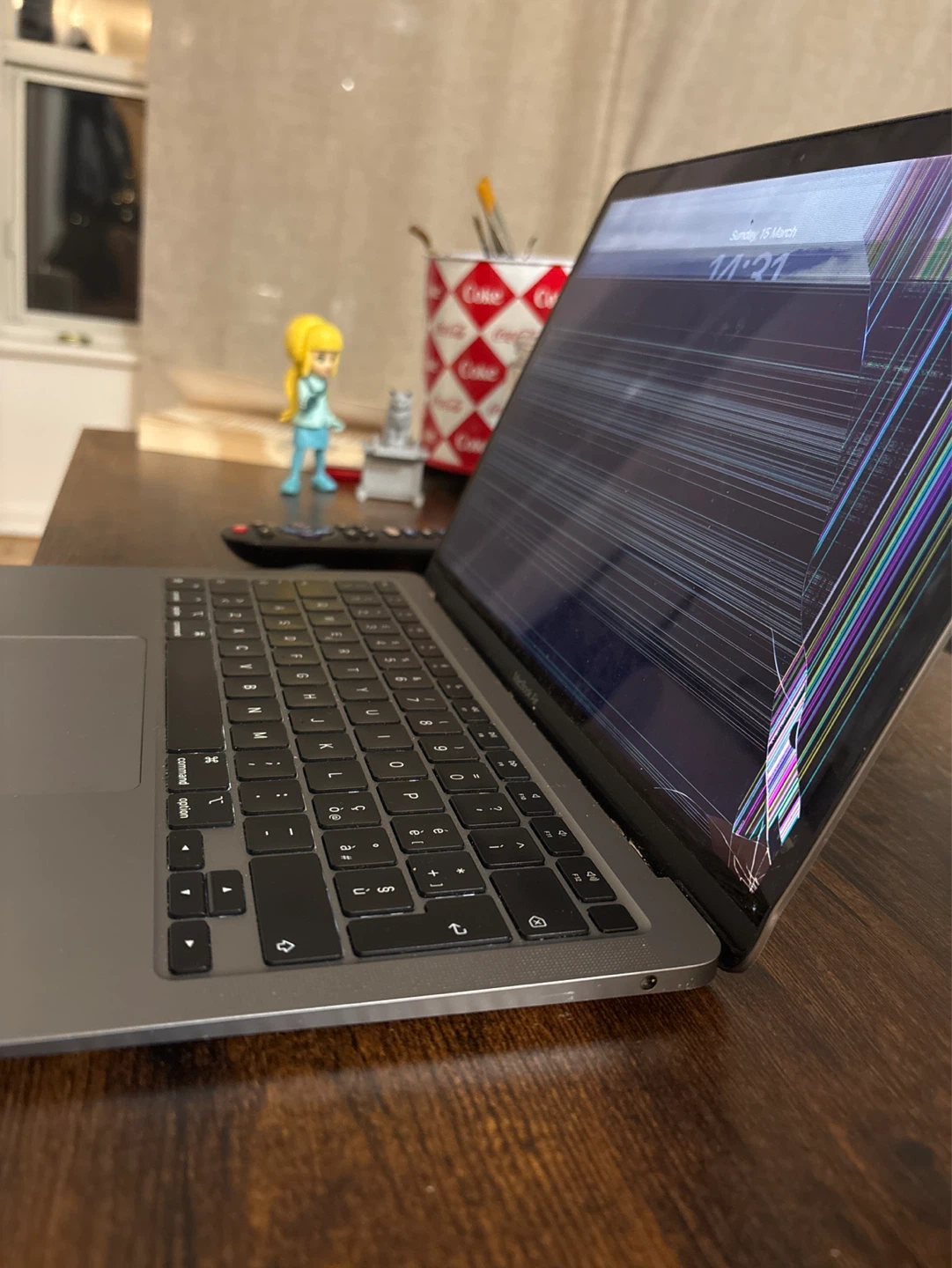 Broken screen. It's a silver model. The keyboard and trackpad work perfectly.