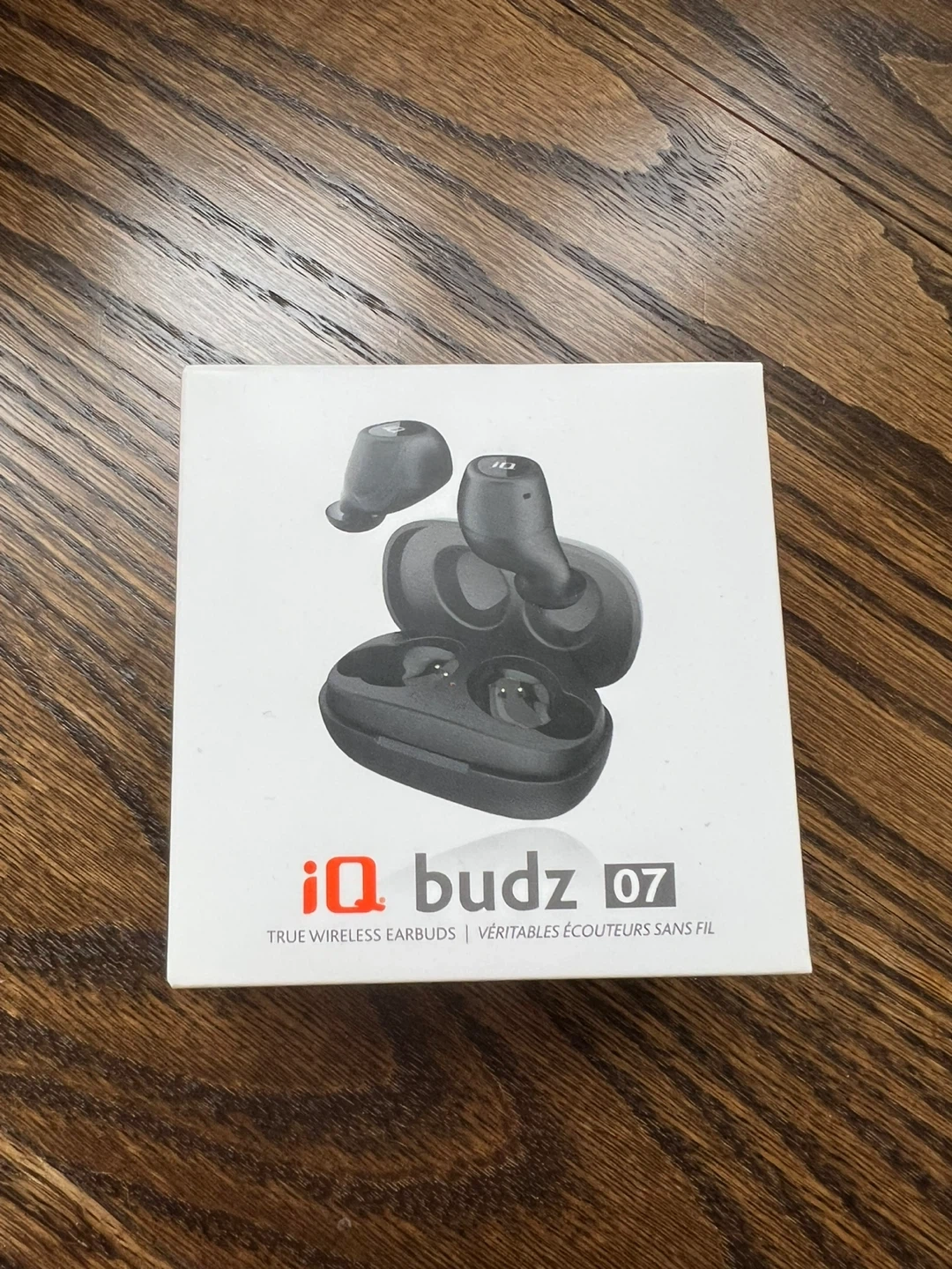 These iQ Budz 07 are true wireless earbuds. They come with a charging case. Pair them using Bluetooth for clear audio.