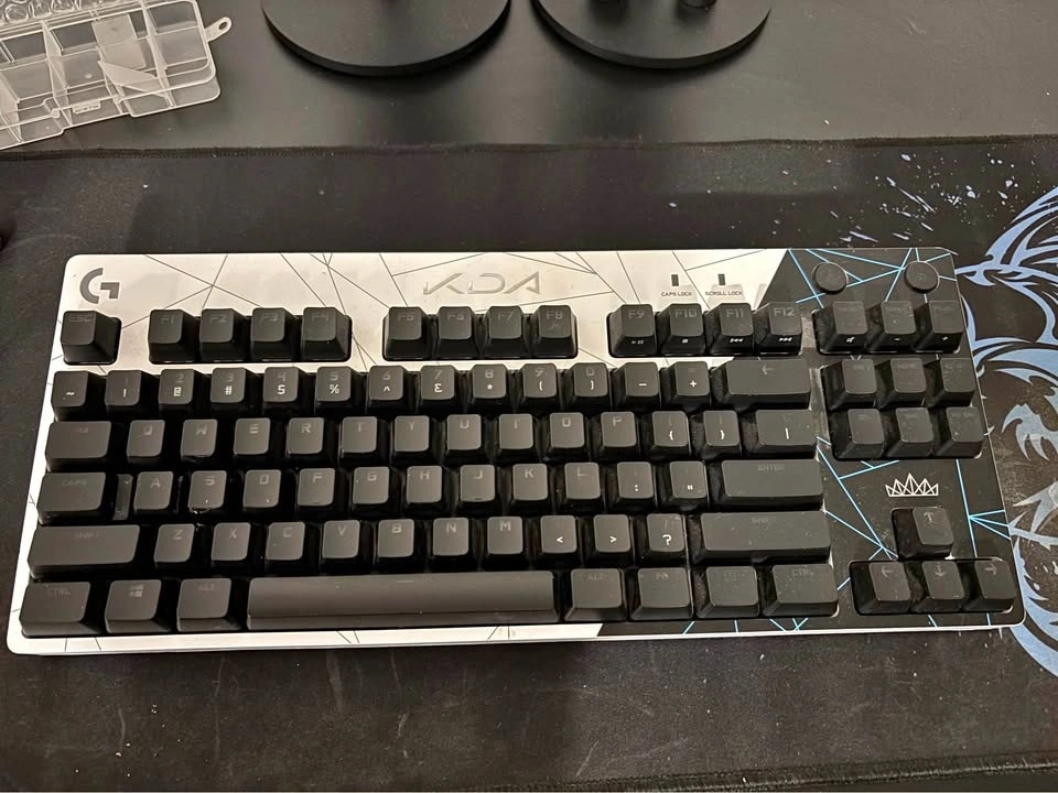 Awesome Logitech G Pro K/DA mechanical gaming keyboard. Has GX Brown Tactile switches, super responsive for gaming. K/DA edition with that unique design. Great keyboard for any setup.