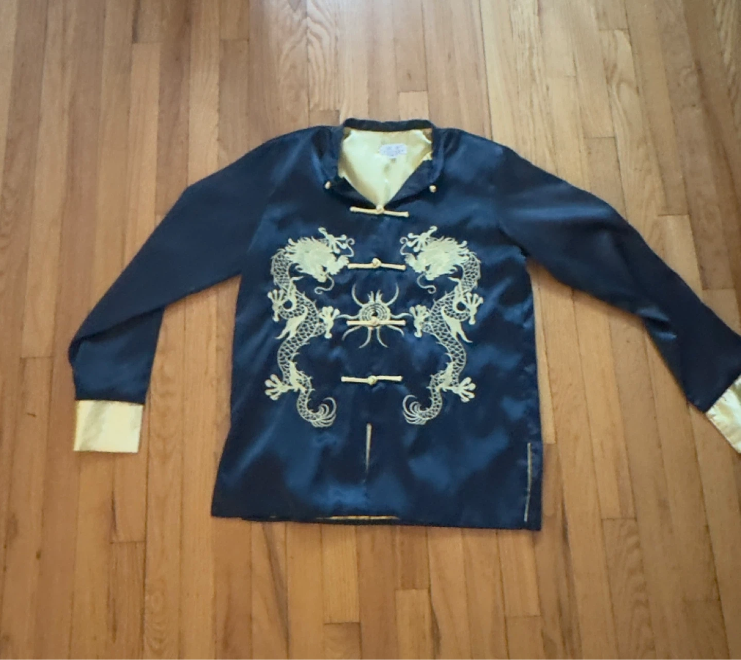Buy & SellMen's Silk Dragon Robe JacketMen's Silk Dragon Robe Jacket$24Dark blue robe jacket with gold dragon embroidery. Features a satin-like finish and traditional frog button closures. Cuffs are also accented in gold.ConditionLike newSizeMWHERE TO MEETCheck LocationView MapSELLERverifiedDavidIrving Park650 reviews0 chats·0 favorites·8 viewsSEND CHAT TO SELLERHi David! I’m interested in your listing.Hi David! I’m interested in your listing.Get the Karrot app to chatSign In to chat