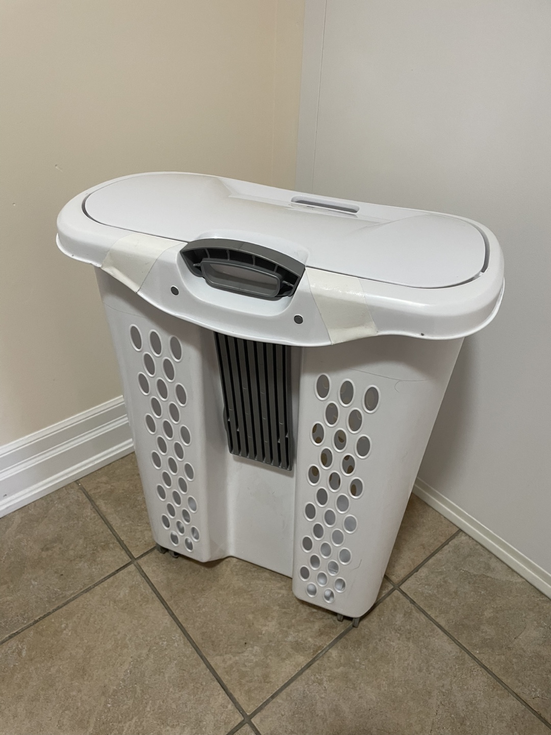 Selling a Sterilite Ultra Wheeled Hamper in white!