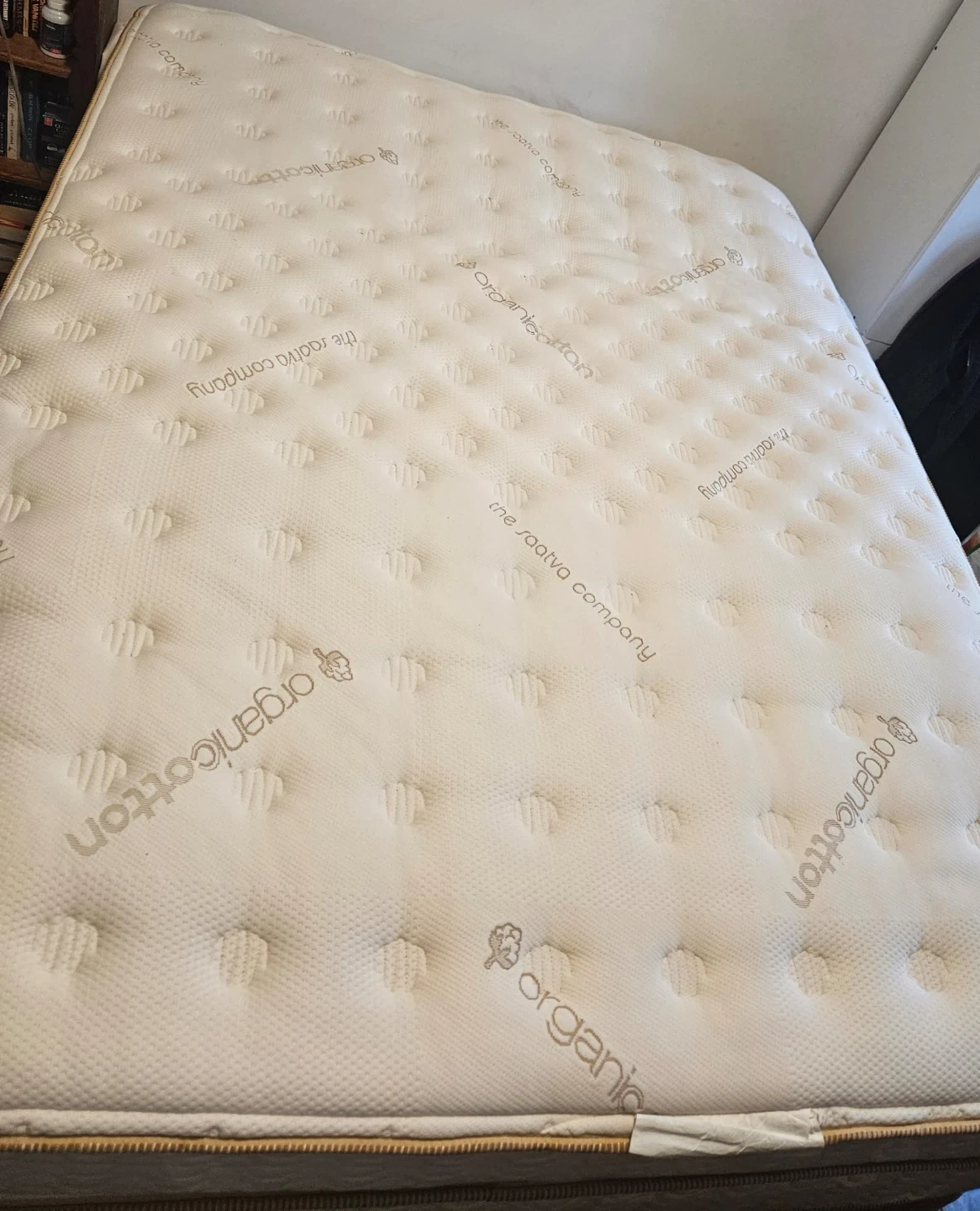 This is a very comfortable bed. Pillow top mattress is made of organic cotton from Saatava / New Jersey. Frame is titanium steel.