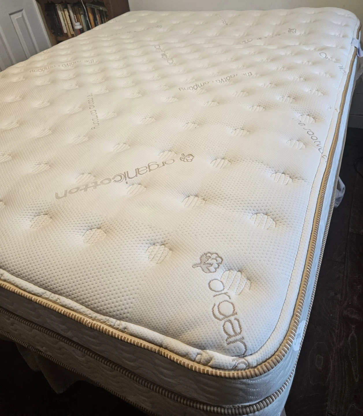 This is a very comfortable bed. Pillow top mattress is made of organic cotton from Saatava / New Jersey. Frame is titanium steel.