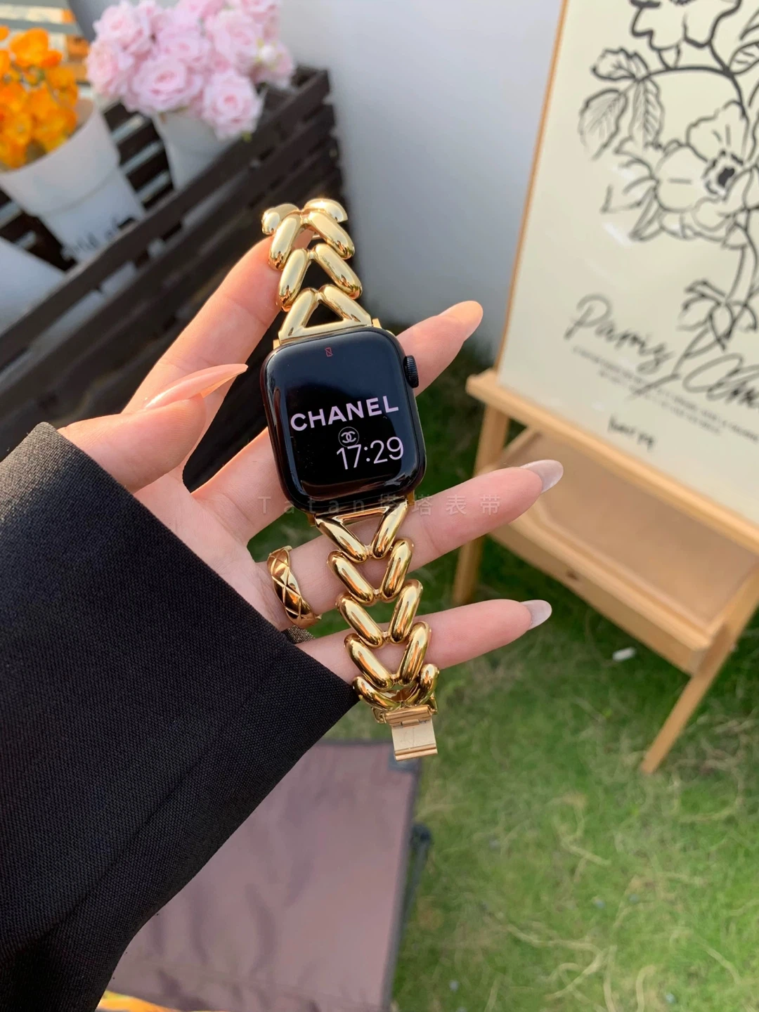 Add a touch of elegance to your Apple Watch with this beautiful band! The gold colour is sure to make a statement. It's brand new.