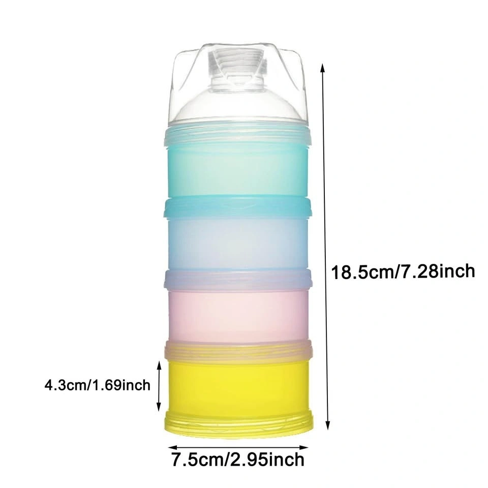 - The 4 compartments of this milk powder dispenser can be combined in different order and in any number, and each layer can also be taken out and used independently.