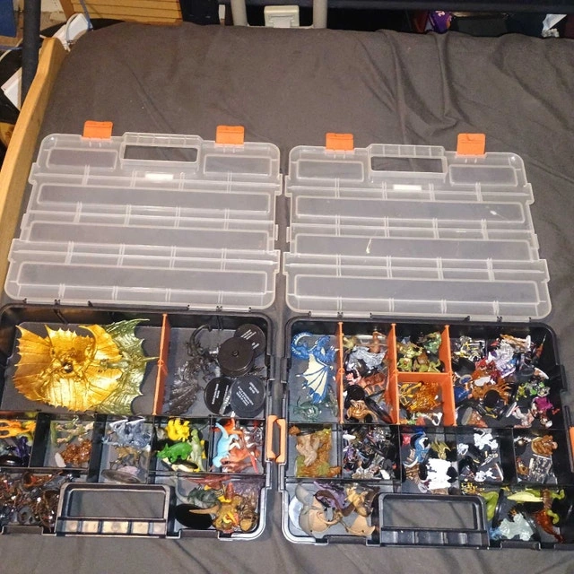 Selling a collection of D&D miniatures, approximately $1200 worth, with 183 models in total. Includes 5 dragons, Wyverns, Gryphons, and many more. Great for any D&D campaign!