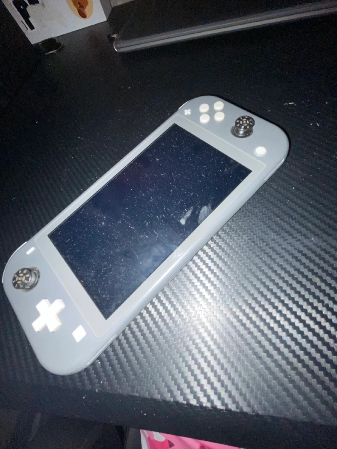 Grey Nintendo Switch Lite. No joy sticks covers but runs very well. No charger but if charger needed I will provide one