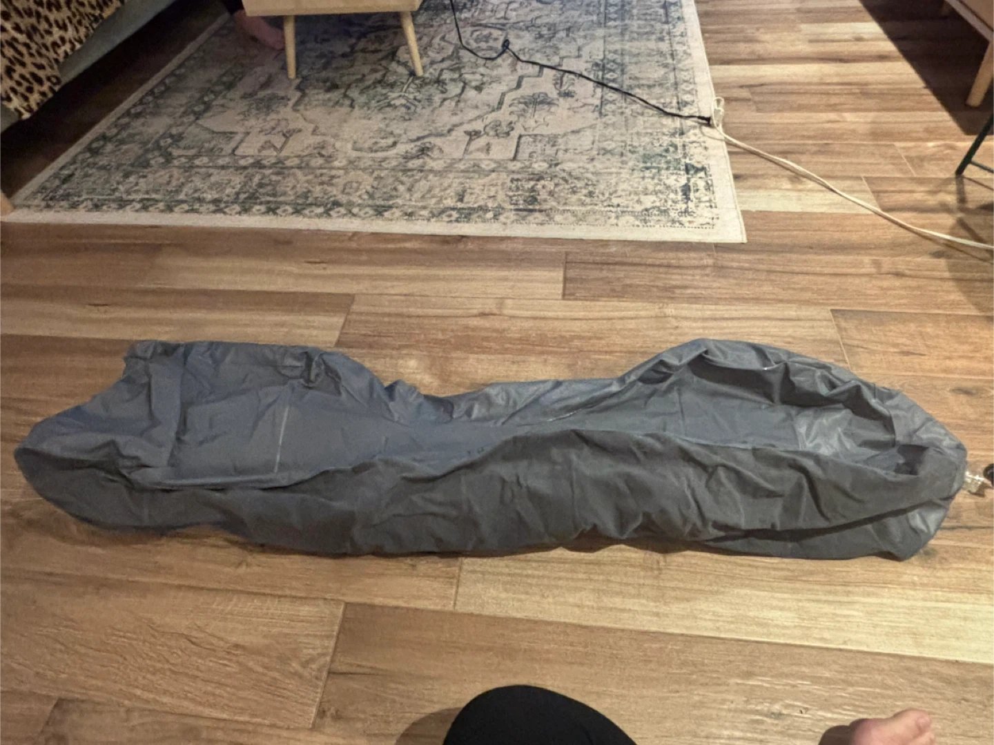 Selling an inflatable car mattress designed to fit in the back seat gap. It's perfect for car travel and camping! It measures approximately 52 inches in length, 10.8 inches in width, and 13 inches in height.