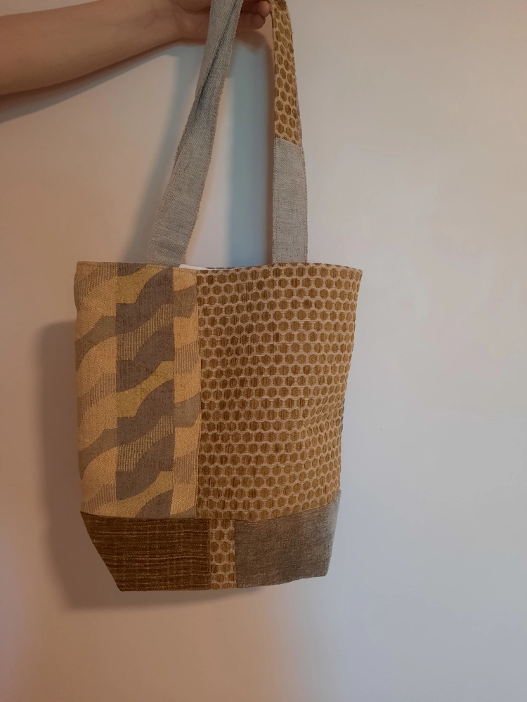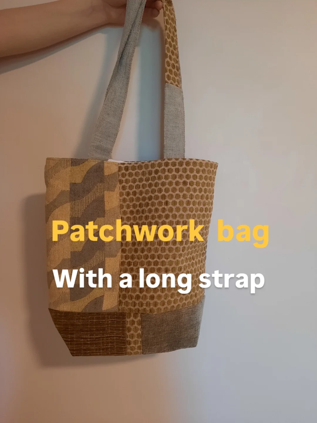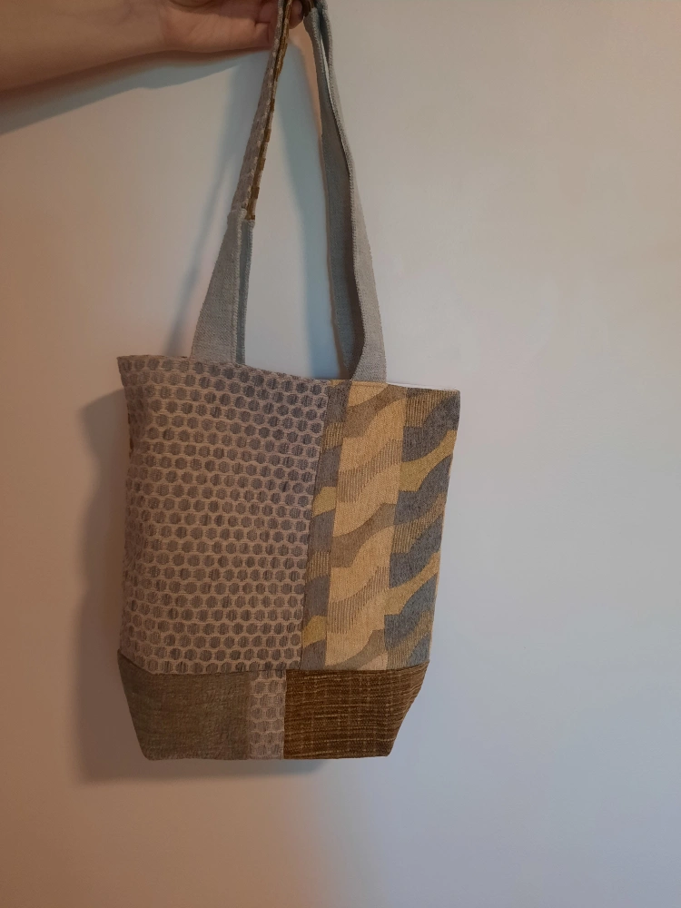 Selling a unique patchwork tote bag! It features a long strap for easy carrying.