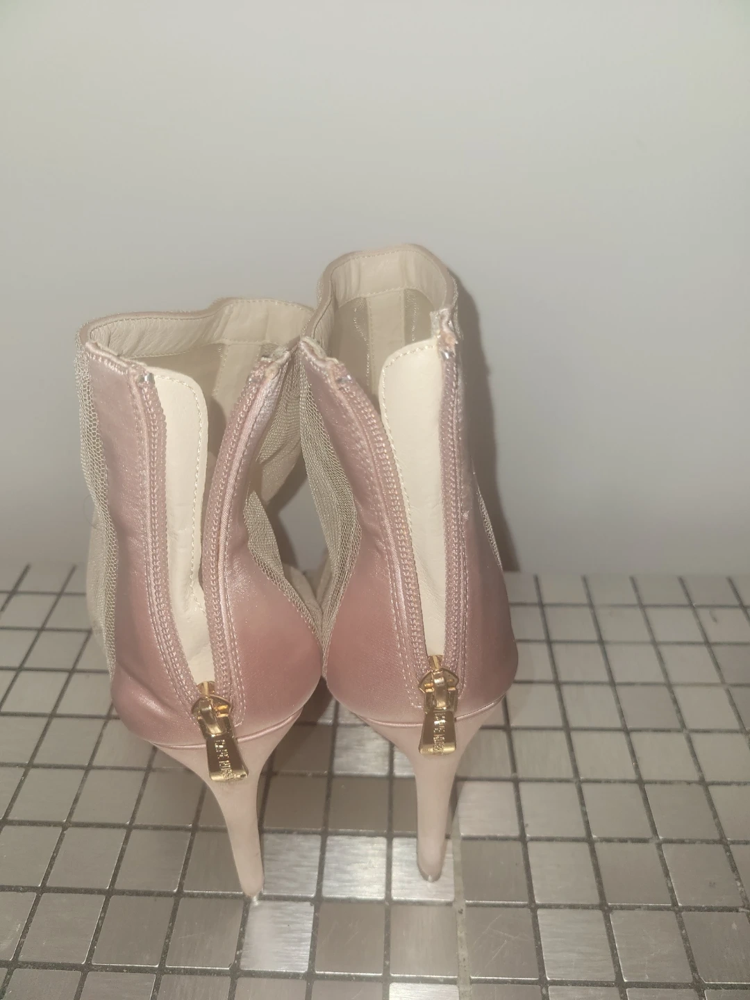 These are some cute pink mesh heel booties in a size 9! They have a zipper in the back and are in great condition. Perfect for a night out or a special occasion