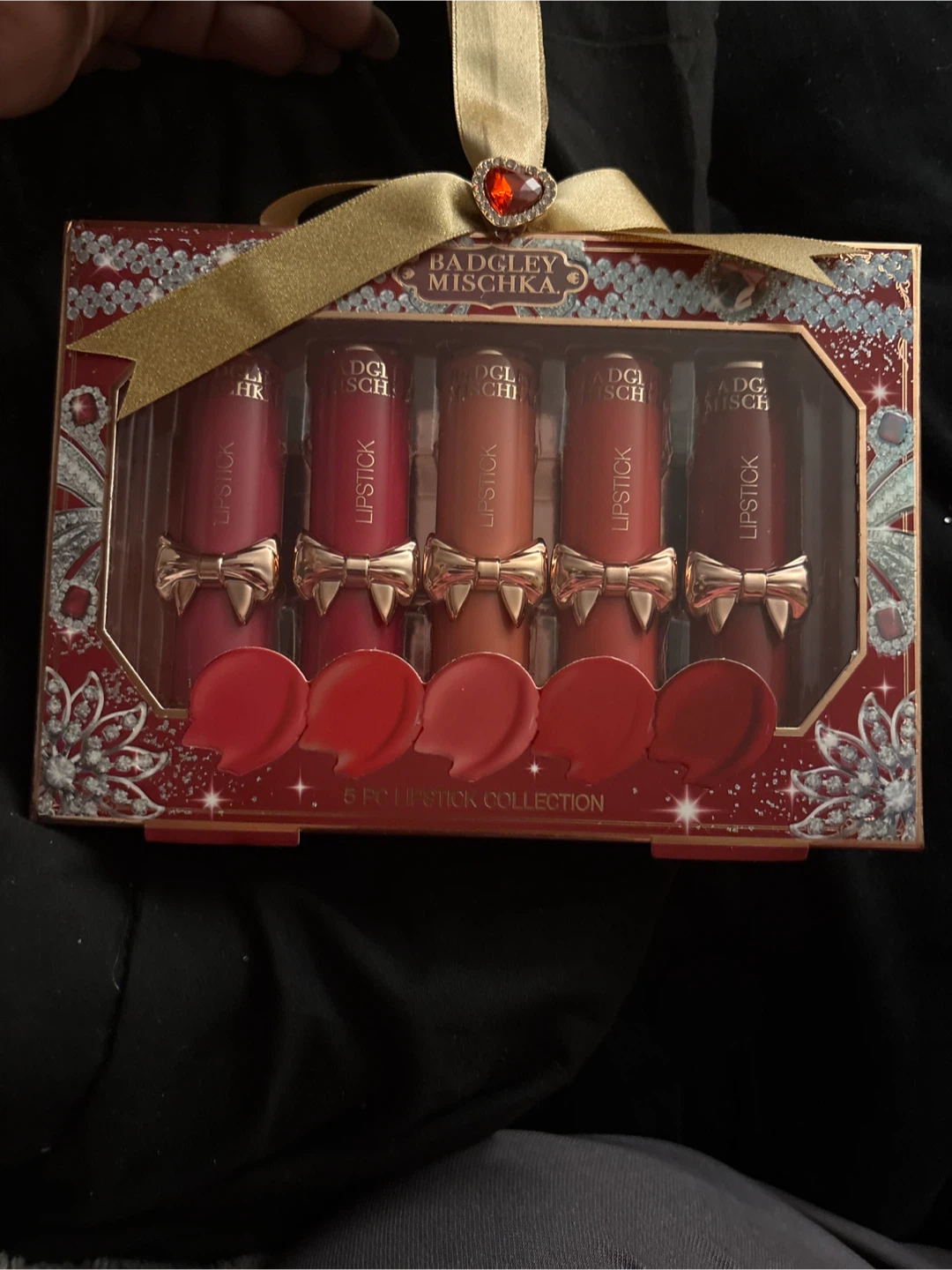Selling a Badgley Mischka 5-piece lipstick collection! The set contains 5 lipsticks, each with 3.6g/0.13 oz of product. Perfect for creating both natural and bold looks with even pigment distribution. Comes in the original box! New