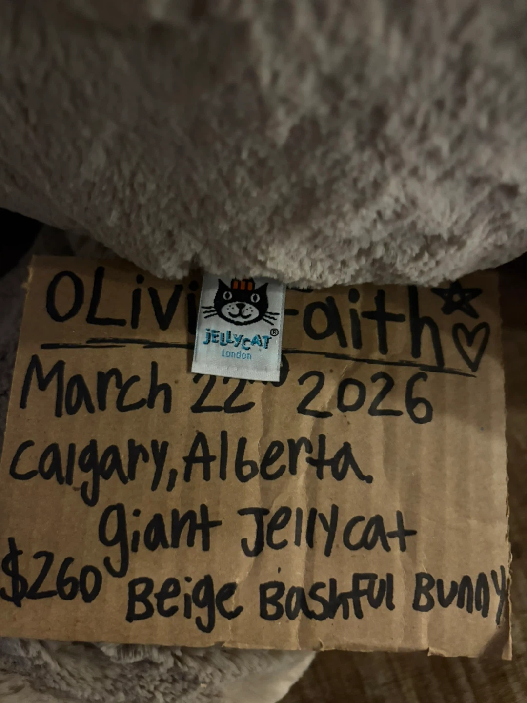 Buy & SellGiant Jellycat Beige Bashful BunnyGiant Jellycat Beige Bashful Bunny$260Pickup highland park Downsizing, no tag but has fabric tag. >Price is firm< Mint Condition, been sitting on the top of my shelf.ConditionNewWHERE TO MEETCheck LocationView MapSELLERverifiedOliviaGreenview1989 reviews1 chats·1 favorites·50 viewsSEND CHAT TO SELLERHi Olivia! I’m interested in your listing.Hi Olivia! I’m interested in your listing.Get the Karrot app to chatSign In to chat