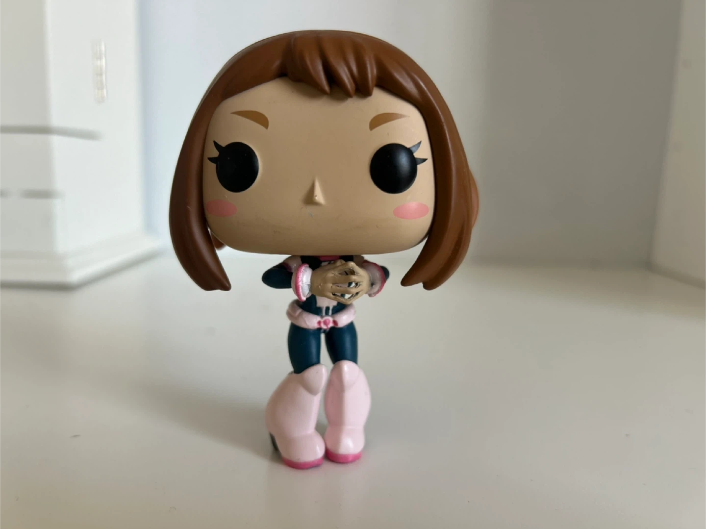 This is a Funko Pop! collectible figure of Ochaco Uraraka from My Hero Academia. It's made of vinyl and stands on its own. A great item for any fan of the series!
