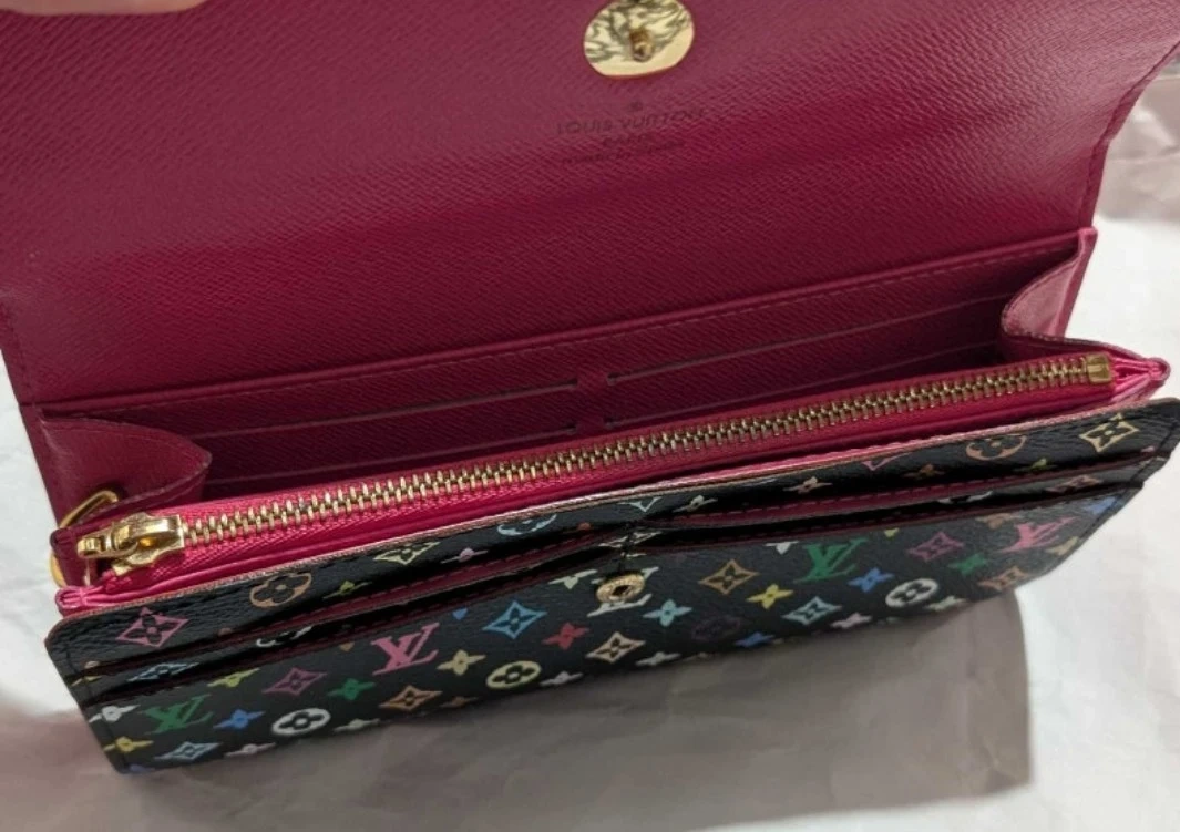 This is a Louis Vuitton Sarah wallet from the Monogram Multicolor collection.
