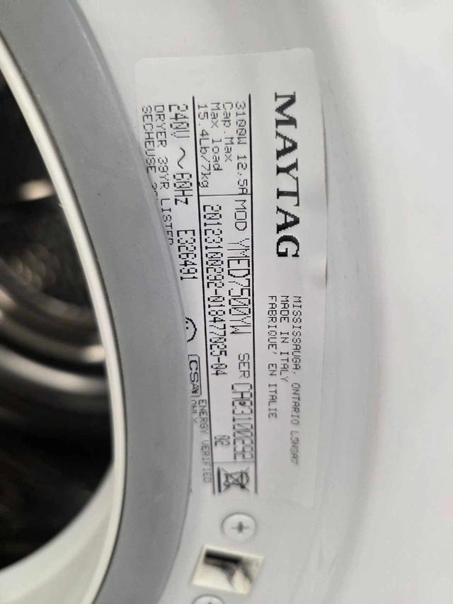 Get a heavy-duty, high-performance Maytag dryer at an unbeatable price! This Maxima series dryer is known for its durability and advanced drying features. Brand: Maytag Maxima, Model: YMED7500YW, Type: Electric Dryer, Features: Steam Boost (Wrinkle prevent), High Capacity, Advanced Moisture Sensing, Heavy Duty cycles. Maytag reliability for only $250. 3 months warranty for peace of mind. Credit, Debit, and Cash accepted. Come see this unit and explore our full inventory at our showroom! Message me today with your best offer or to arrange a viewing!