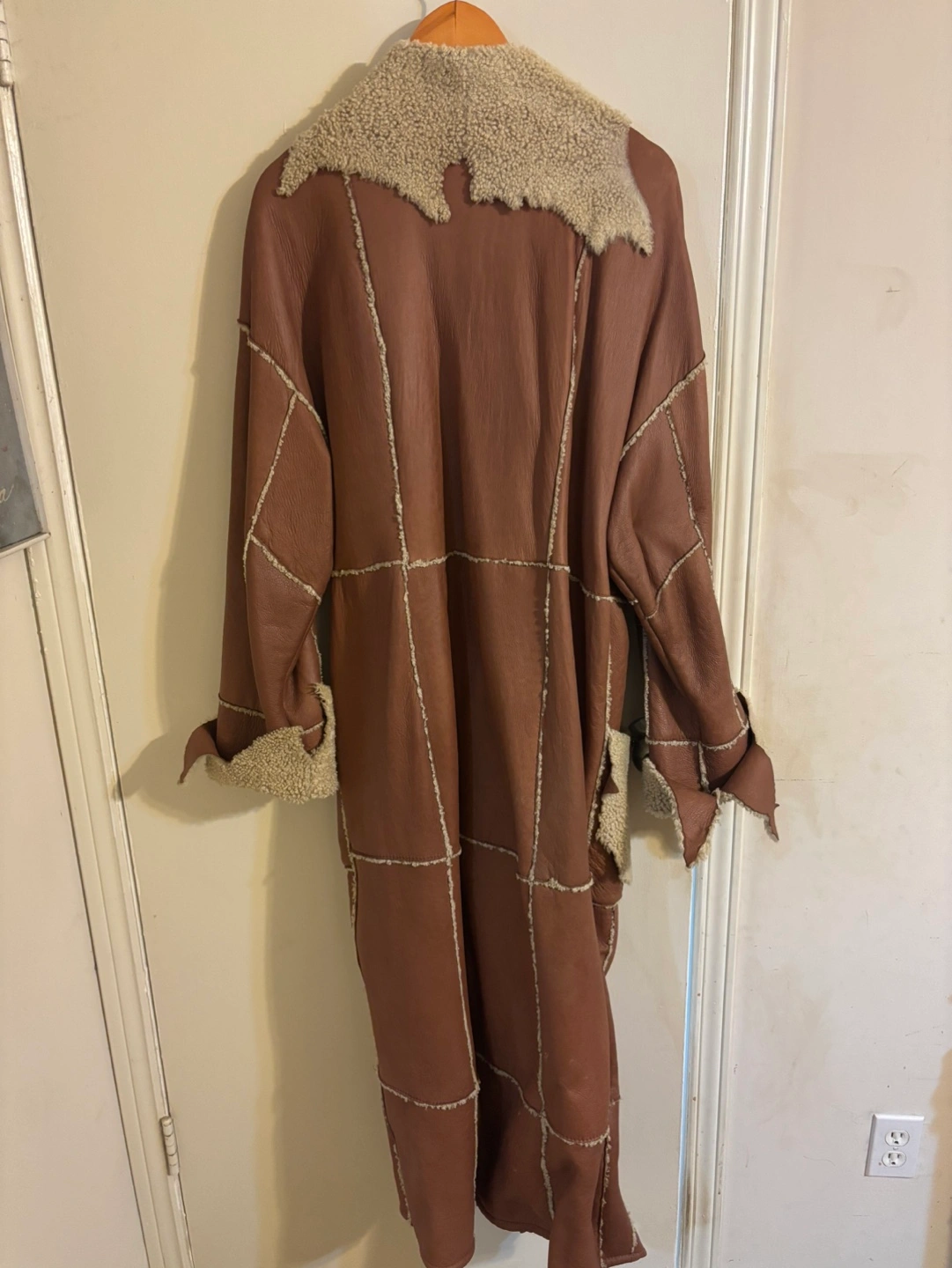 Long Brown Leather and Shearling Coat