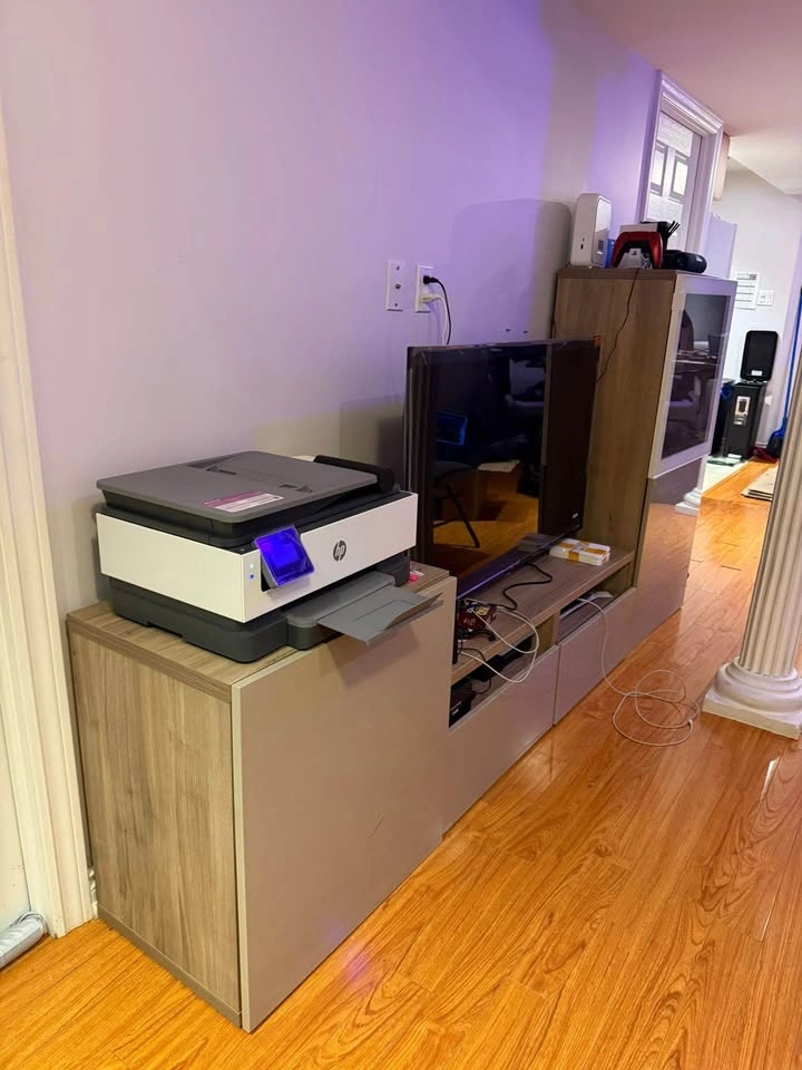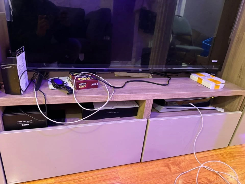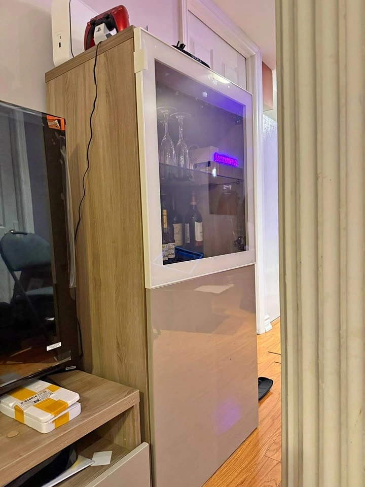 Amazing condition 3 piece entertainment stand. Comes with tv stand and two cupboards that can be used for any purpose. One is currently used as a bar for wines, glasses etc and the other to store documents. No chips or cracks.