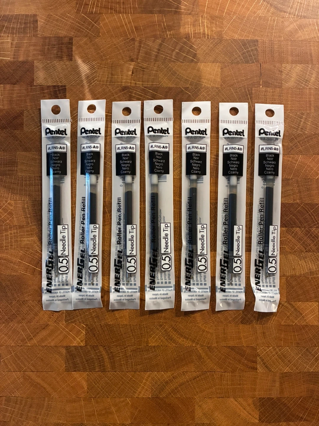Giving away 7 pentel energel LRN5 0.5mm needle tip refills in black. Compatible in most refillable pens like muji, zebra sarasa, etc. The ink is quick drying and does not bleed beneath highlighters. Very smooth writers.