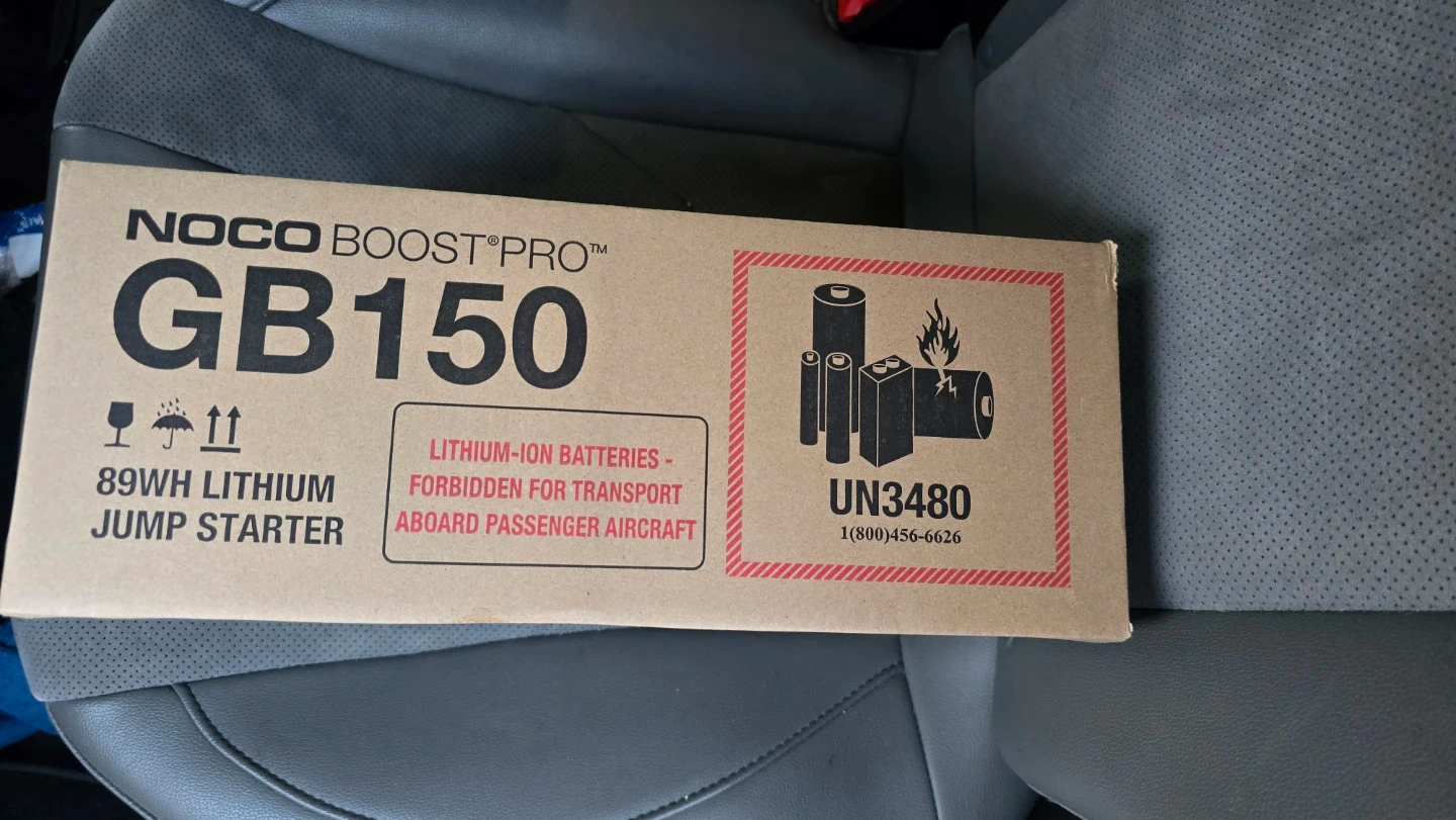 NOCO Boost Pro GB150 jump starter. It's an 89WH lithium jump starter. Lithium-ion batteries forbidden for transport aboard passenger aircraft. UN3480.