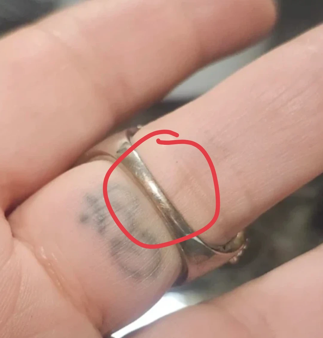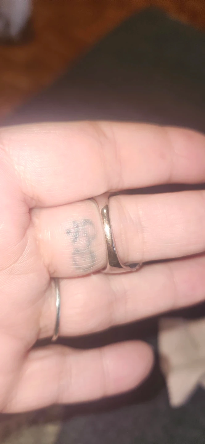 There is a small section on the outer band with a little tarnish, none on the inside band.
