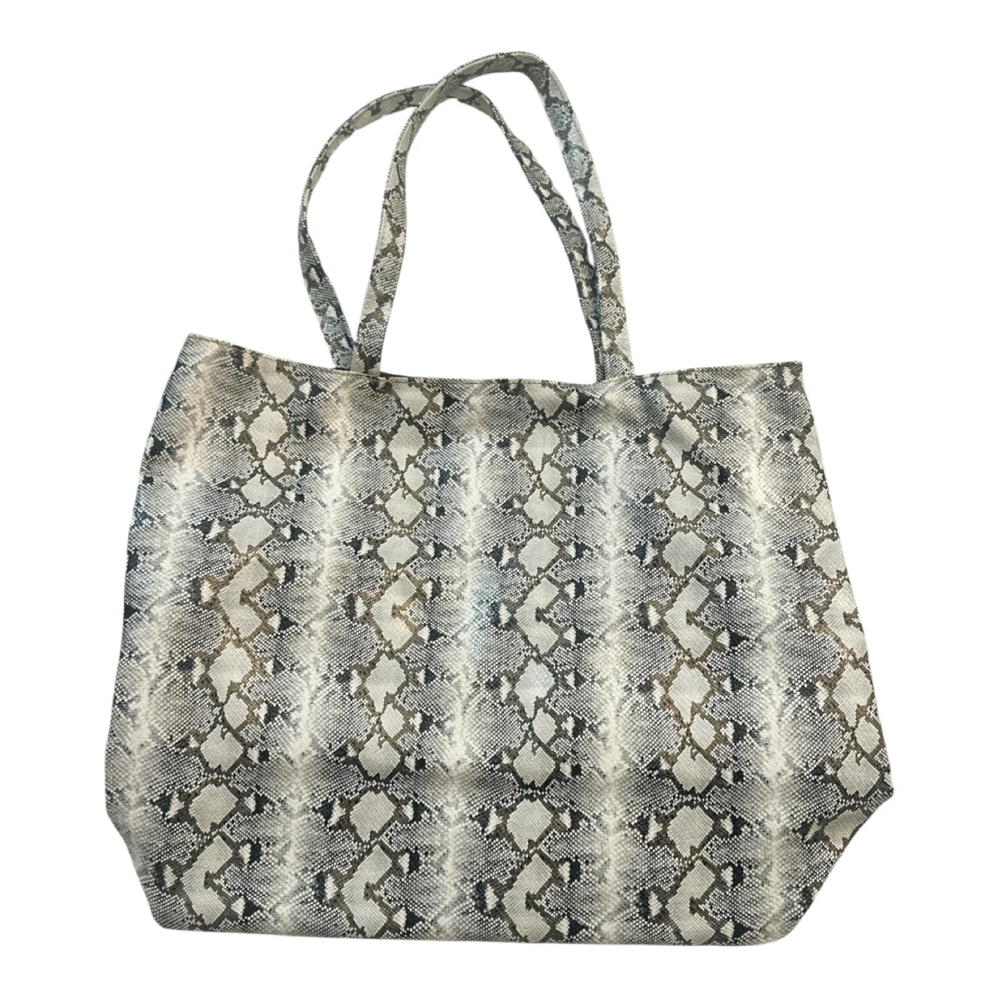 This oversized tote bag features a bold snake print design. It's a spacious bag perfect for carrying all your essentials. Made from a durable material with comfortable shoulder straps.