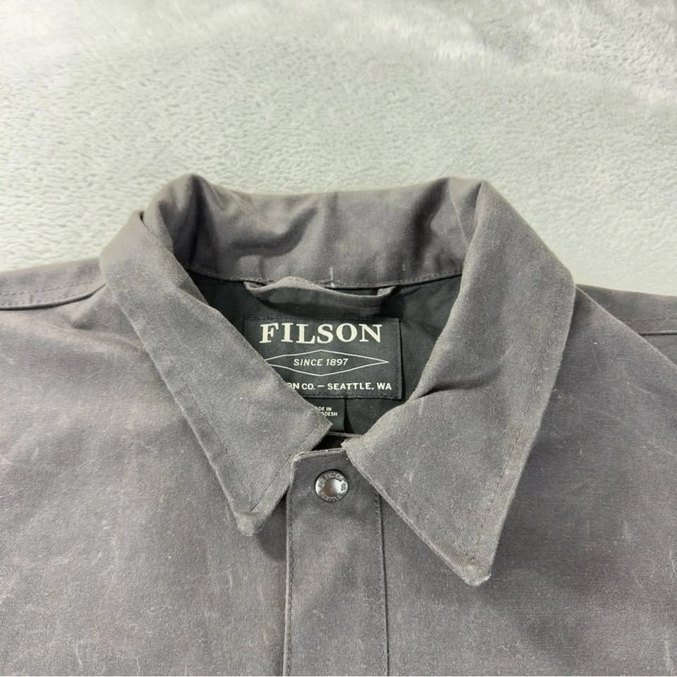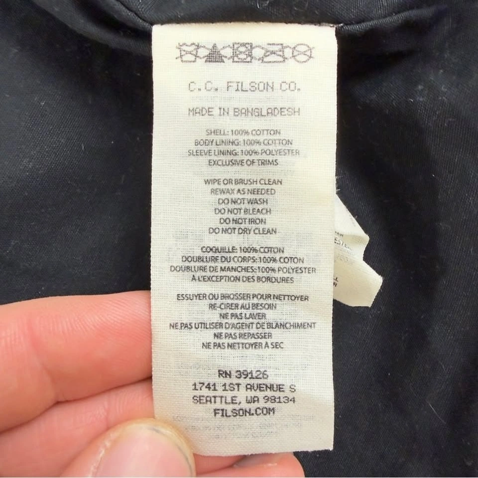 CC Filson Tin Cloth Short Lined Cruiser Jacket Mens XL Black Waxed Canvas Twill in good pre owned condition as shown in the photos with the jacket needing to be spot cleaned as it's got what looks like staining on the jacket.