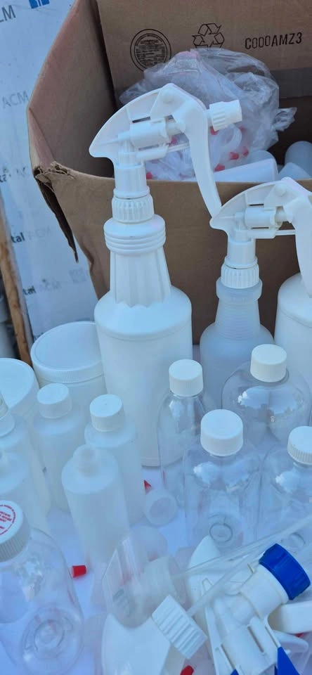 New, Plastic bottles, tops, sprayers.