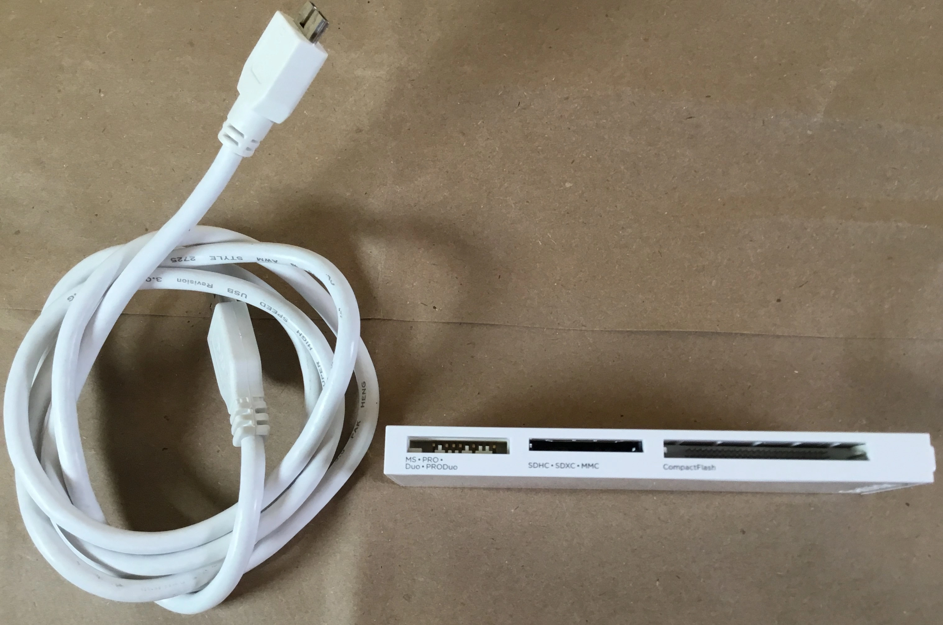 All-in-one USB memory card reader. Works with SD, MicroSD, CompactFlash and more. Used only a couple times and in excellent condition. Includes cable.