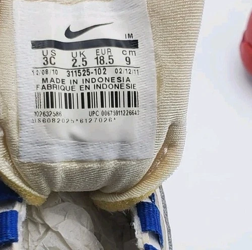 This is a pair of vintage Nike Air Max 95 LE DB Doernbecher Collection sneakers from 2011, size 3C. They are multicolor with a pull-on closure and designed for walking. Made in Indonesia.