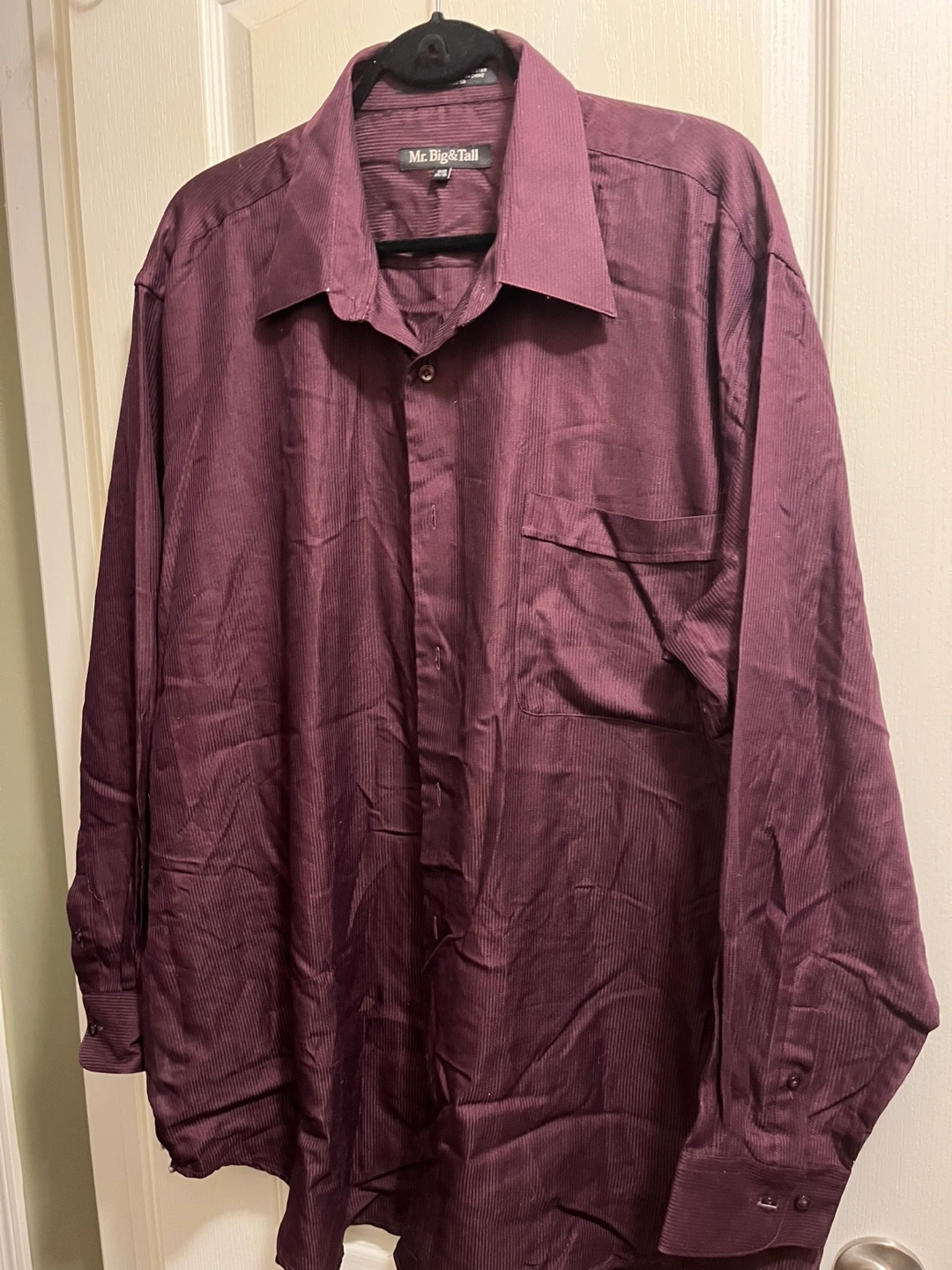 Selling a variety of men’s clothing, ideal for anyone needing bigger sizes. All items are in good condition, with some never worn and still with tags. Sizes range from XXL to 5X for tops, and various waist/length sizes for pants. Brands vary – some well-known, some generic. Perfect for individual or lot sale.