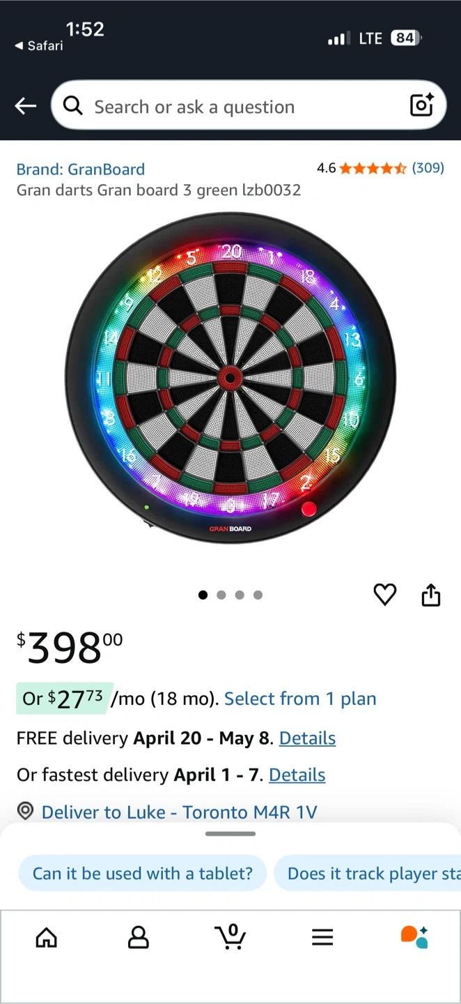 Buy & SellGran Board 3 i DartboardGran Board 3 i Dartboard$171Gran Board 3 electronic i dartboard Features a 17.7 inch diameter. Lights up calculators scoreConditionLike newWHERE TO MEETCheck LocationView MapSELLERRukuAgincourt N321 review0 chats·0 favorites·9 viewsSEND CHAT TO SELLERHi Ruku! I’m interested in your listing.Hi Ruku! I’m interested in your listing.Get the Karrot app to chatSign In to chat