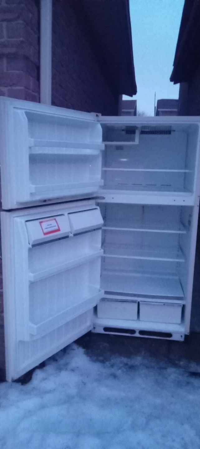 Selling a Kenmore refrigerator in white. It's a top-freezer model with wire shelves and drawers. Dimensions 59 inches legth 33 inches It's in good working condition and ready for a new home!