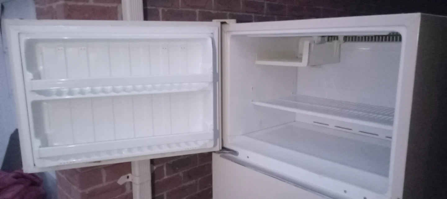 Selling a Kenmore refrigerator in white. It's a top-freezer model with wire shelves and drawers. Dimensions 59 inches legth 33 inches It's in good working condition and ready for a new home!
