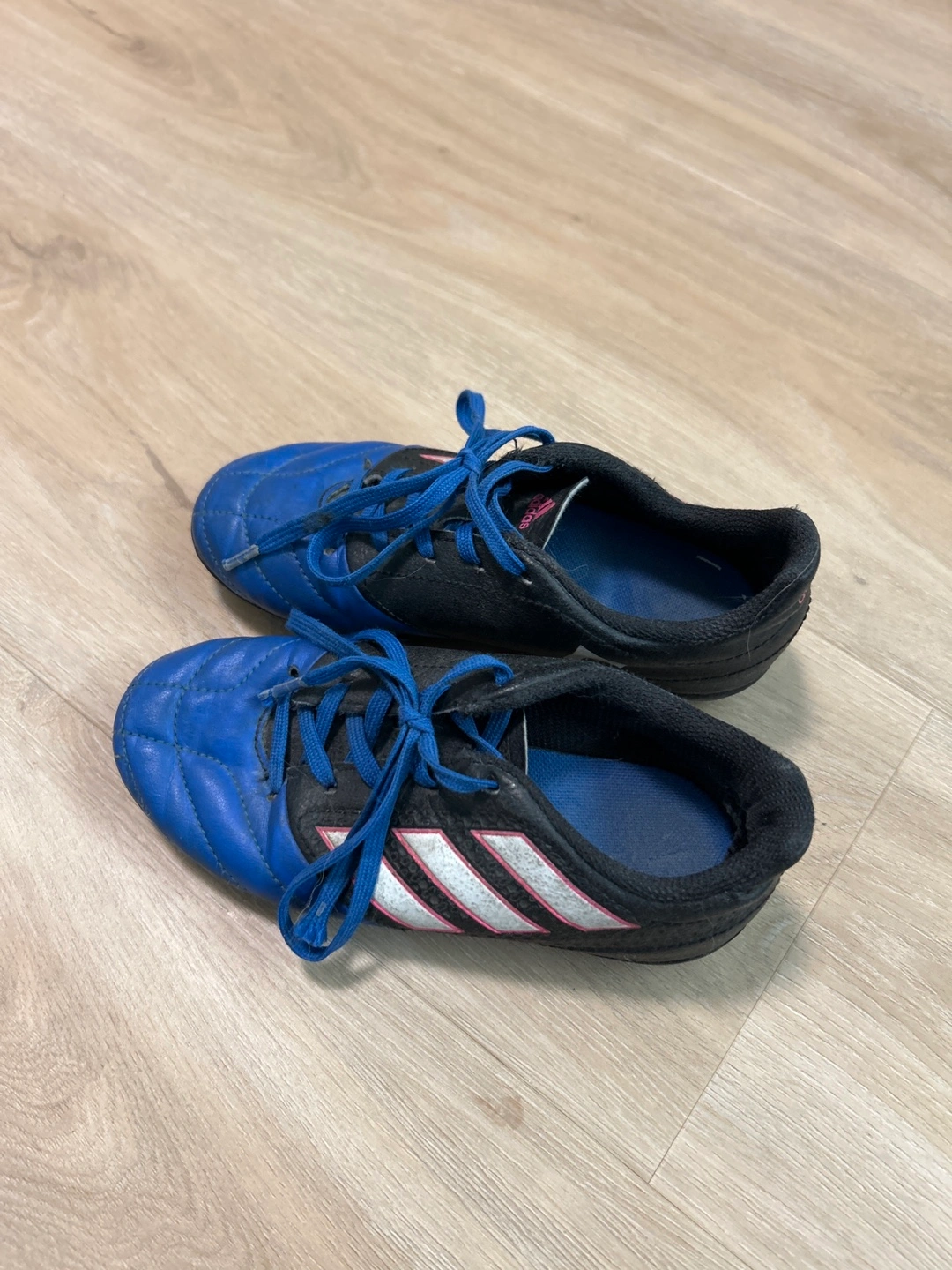 Selling a pair of Adidas soccer cleats in blue and black! Size 13k. They're in used condition, but still have lots of life left for the pitch