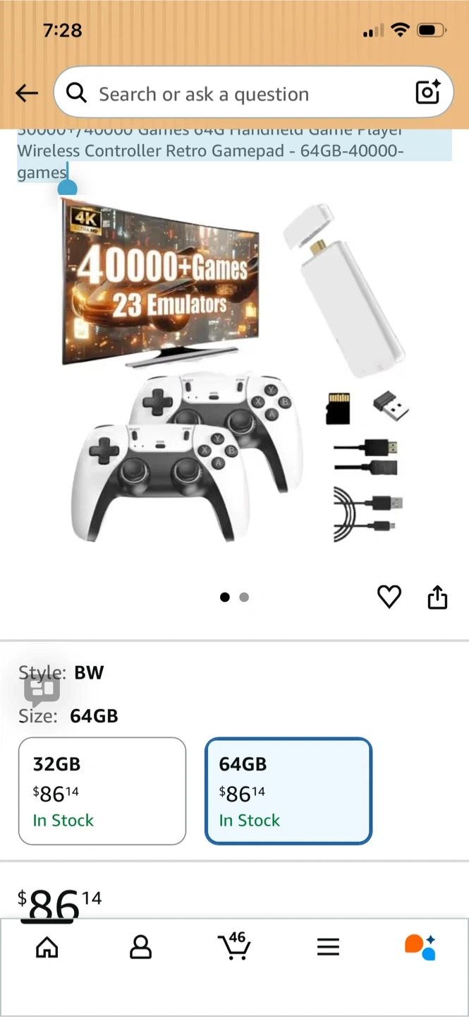 4K TV Game Stick M15 Video Game Console Built-in 30000+/40000 Games 64G Handheld Game Player Wireless Controller Retro Gamepad - 64GB-40000-games